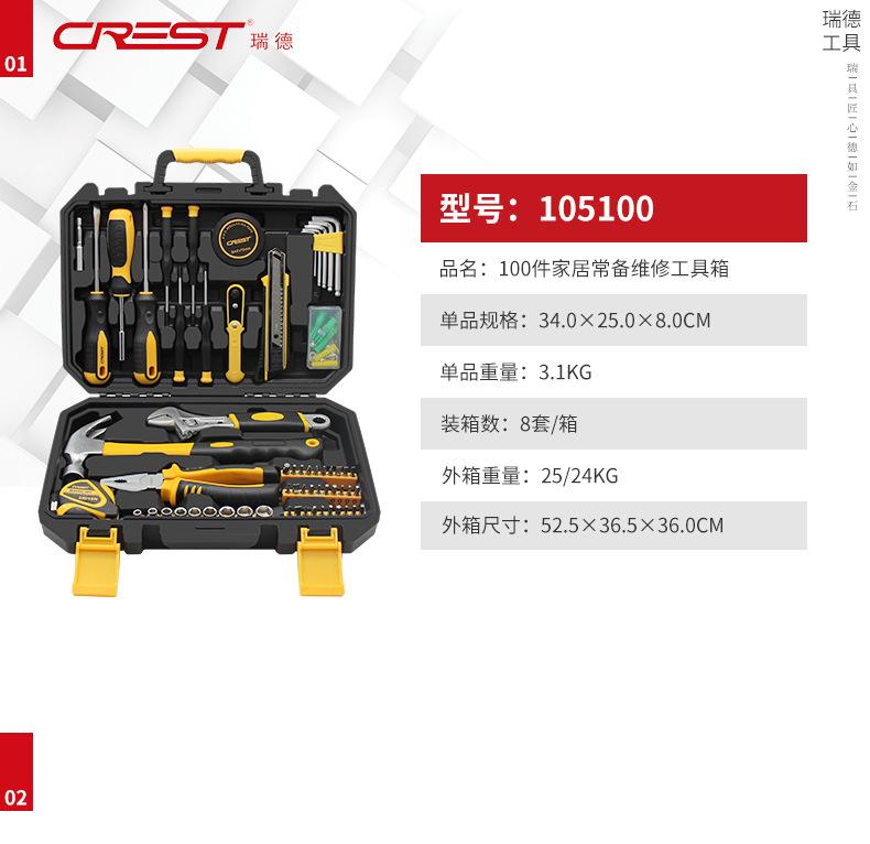 Caja de herramientas roja para el hogar, juego de herramientas de mantenimiento multifuncional, combinación familiar, 100 juegos de regalos al por mayor