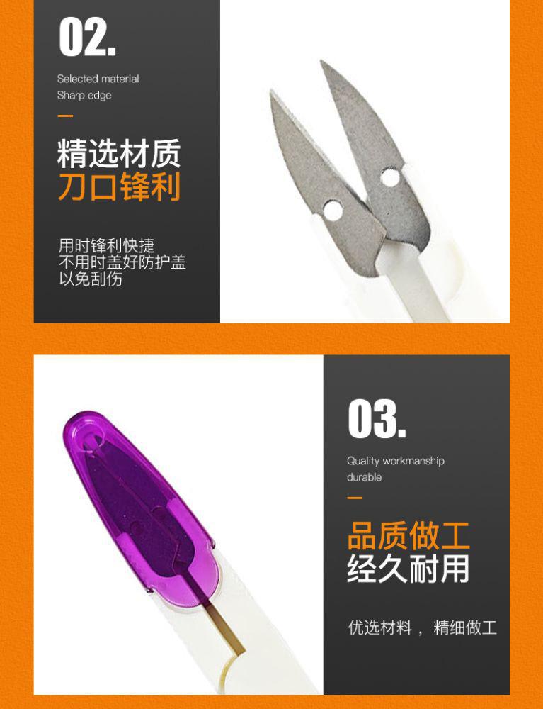 Tijeras de hilo en forma de U con cubierta transparente, tijeras de hilo de coser de punto de cruz de color, tijeras de hilo de pesca de resorte afiladas, tijeras pequeñas