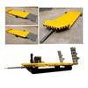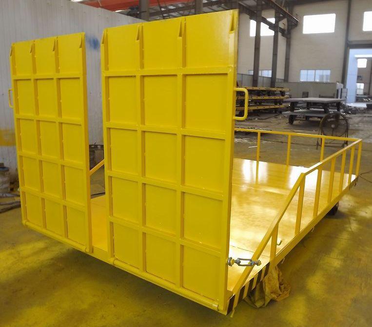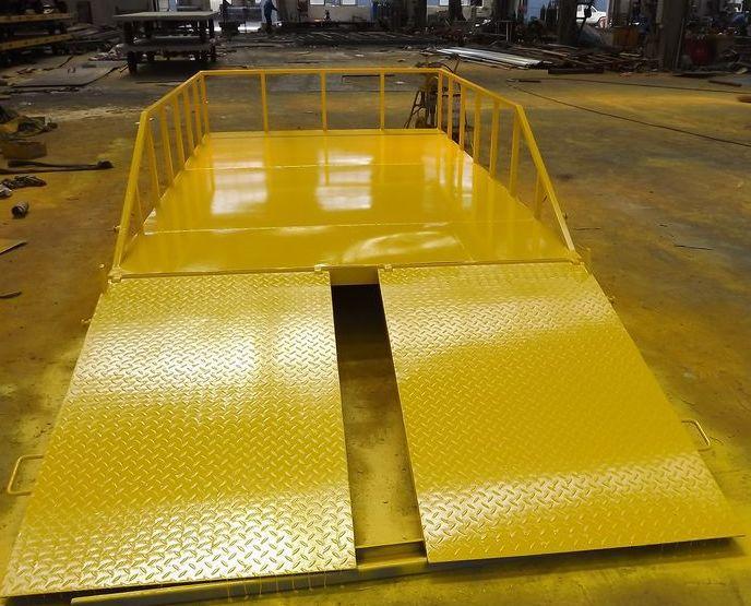 Instrucciones de producción de remolque de plataforma baja: carga 2500 kg, tamaño de la mesa 2000*1500 mm, altura de la mesa 250 mm. Se utiliza acero de canal 8-10# como marco principal, y la superficie está pavimentada con placa de acero de 4 mm y luego con piel de goma amortiguadora de 10 mm o más. Se instalan barandales de tubo cuadrado de 300 mm de altura en la parte delantera y trasera de la mesa, fijados con pernos (desmontables). Los neumáticos utilizan 4 neumáticos de goma maciza 300*100, las dos ruedas delanteras son marcos de ruedas universales para dirección, y las dos ruedas traseras son direccionales. Para bajar la altura de la mesa, las ruedas traseras se instalan en el lateral de la mesa. El marco de tracción triangular se puede desmontar o colocar 90° hacia arriba, y la altura del gancho de tracción es ≤240 mm. Las dimensiones generales de toda la máquina son: 2500*1750*400 mm. Pintura amarilla de ingeniería.