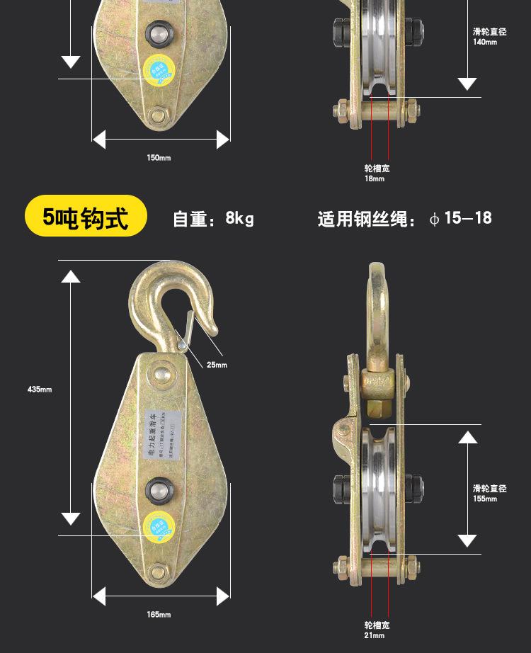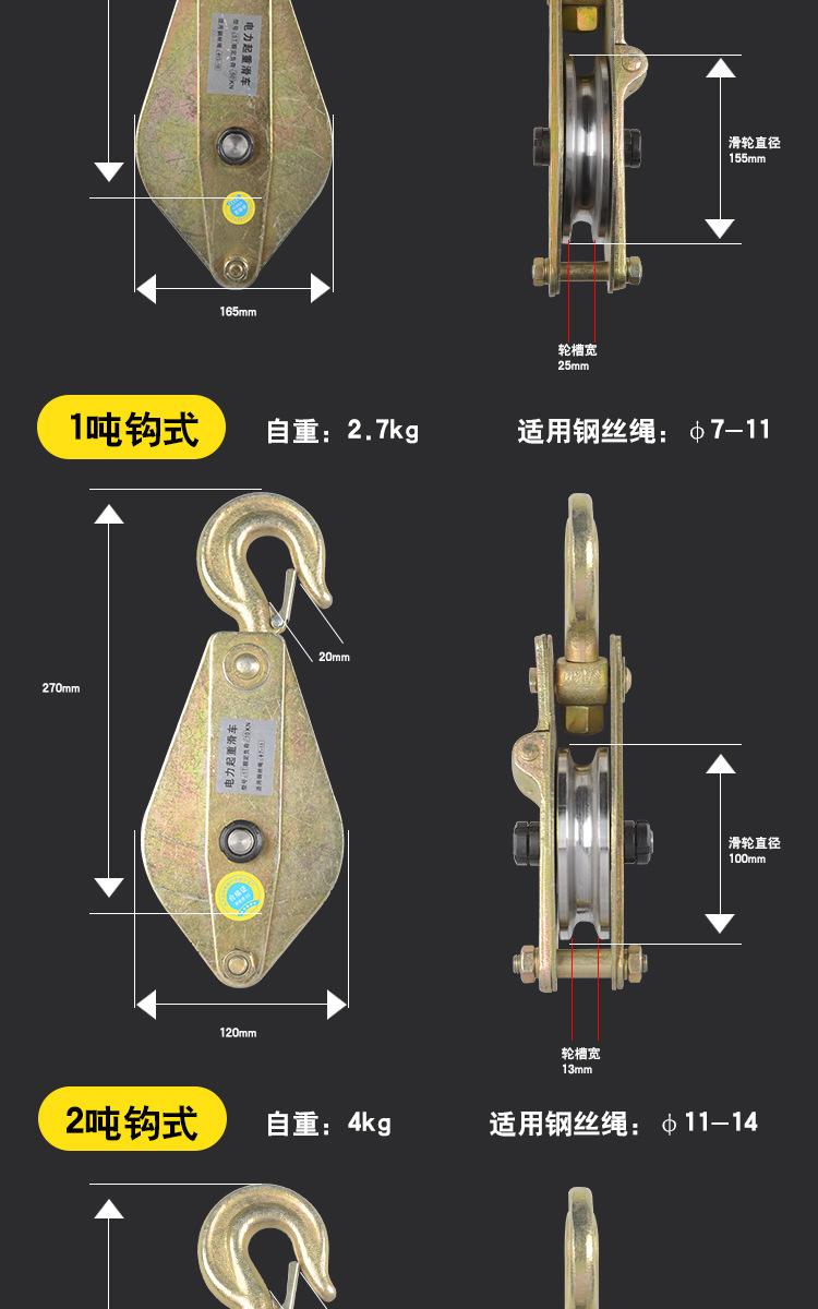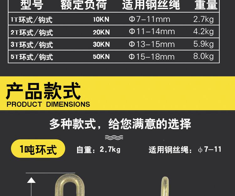 1 ton hook type wire rope 11mm, 2 tons hook type wire rope 14mm, 3 ton hook type wire rope 15mm, 5 ton hook ty...