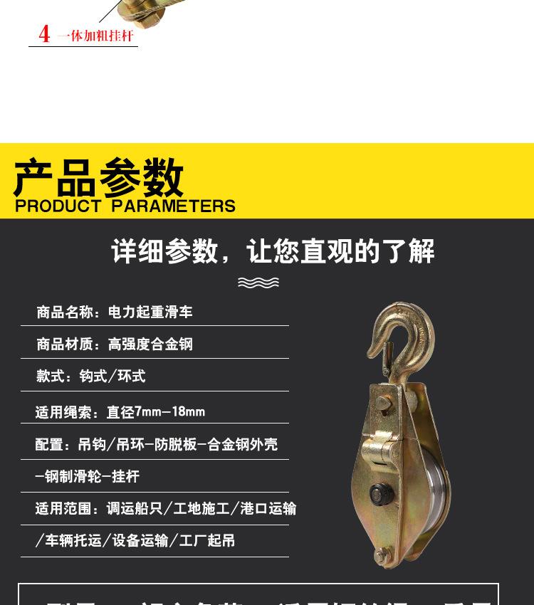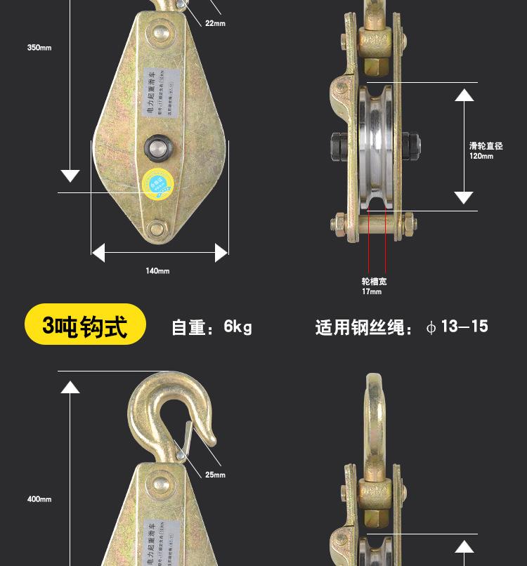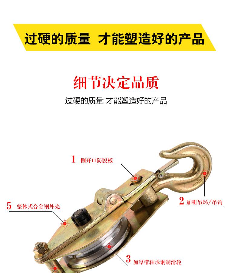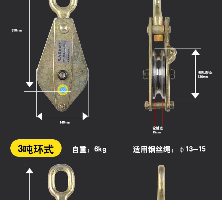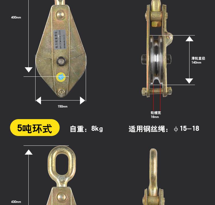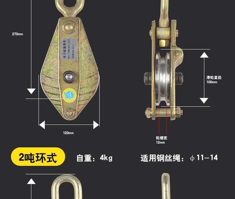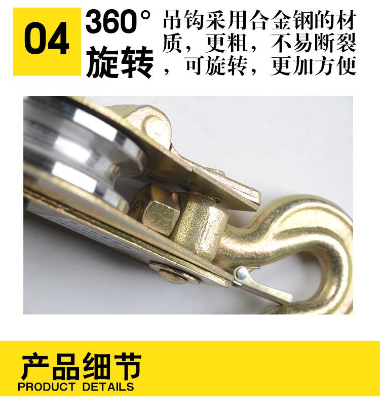 Polea de elevación gancho cable de acero elevación elevación polea grillete rodamiento polea bloque polea de una sola rueda engrosamiento