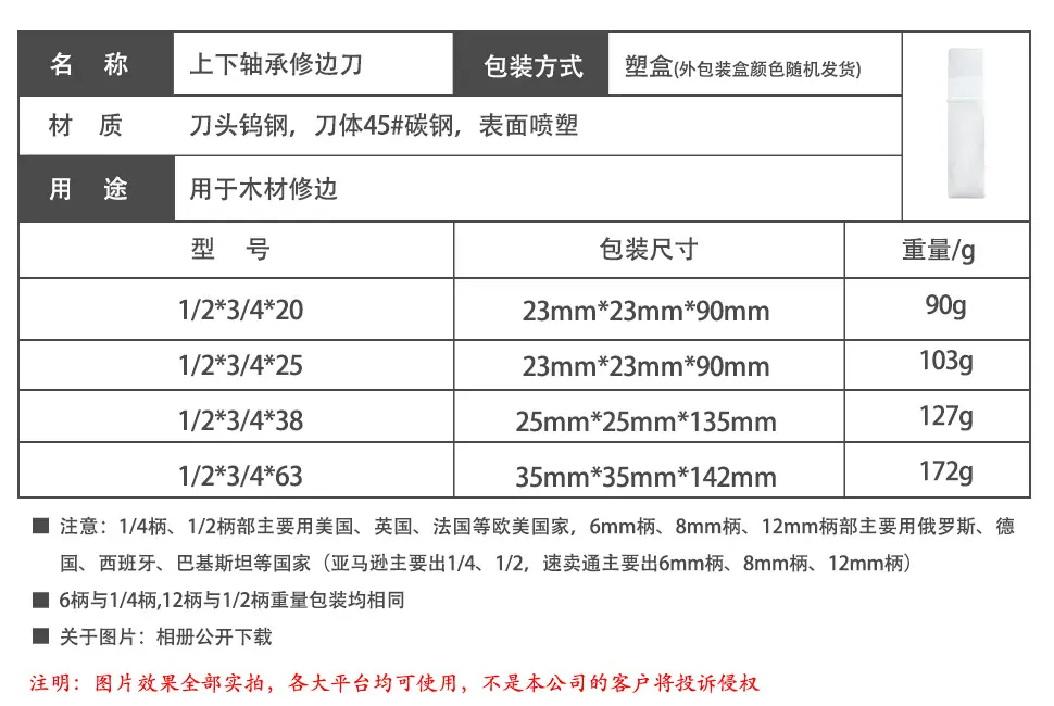 Upper and lower bearing trimming knife-yellow 1/2*3/4*20, Upper and lower bearing trimming knife-yellow 1/2*3/...
