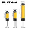 3-piece set of upper and lower bearing trimming knives - yellow 1/2 handle (20+25+63)