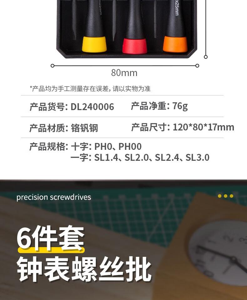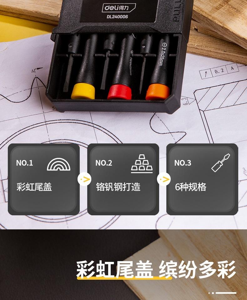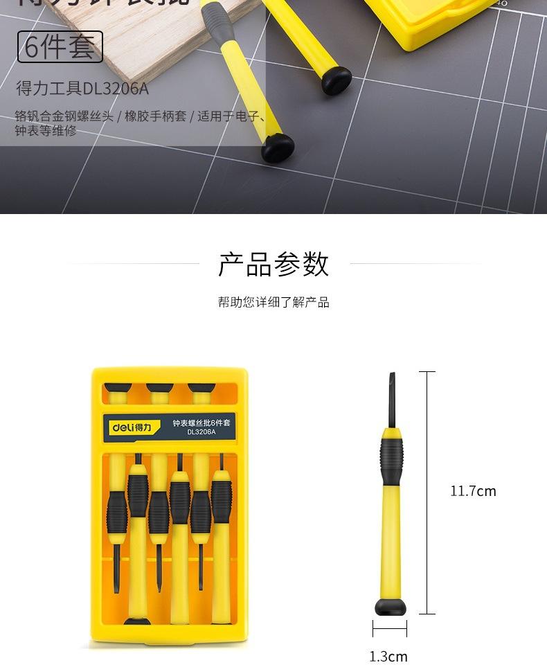 Herramienta Deli mango de plástico precisión pequeño destornillador de cruz juego combinado mango de plástico lote para reloj y pulsera juego de 6 piezas