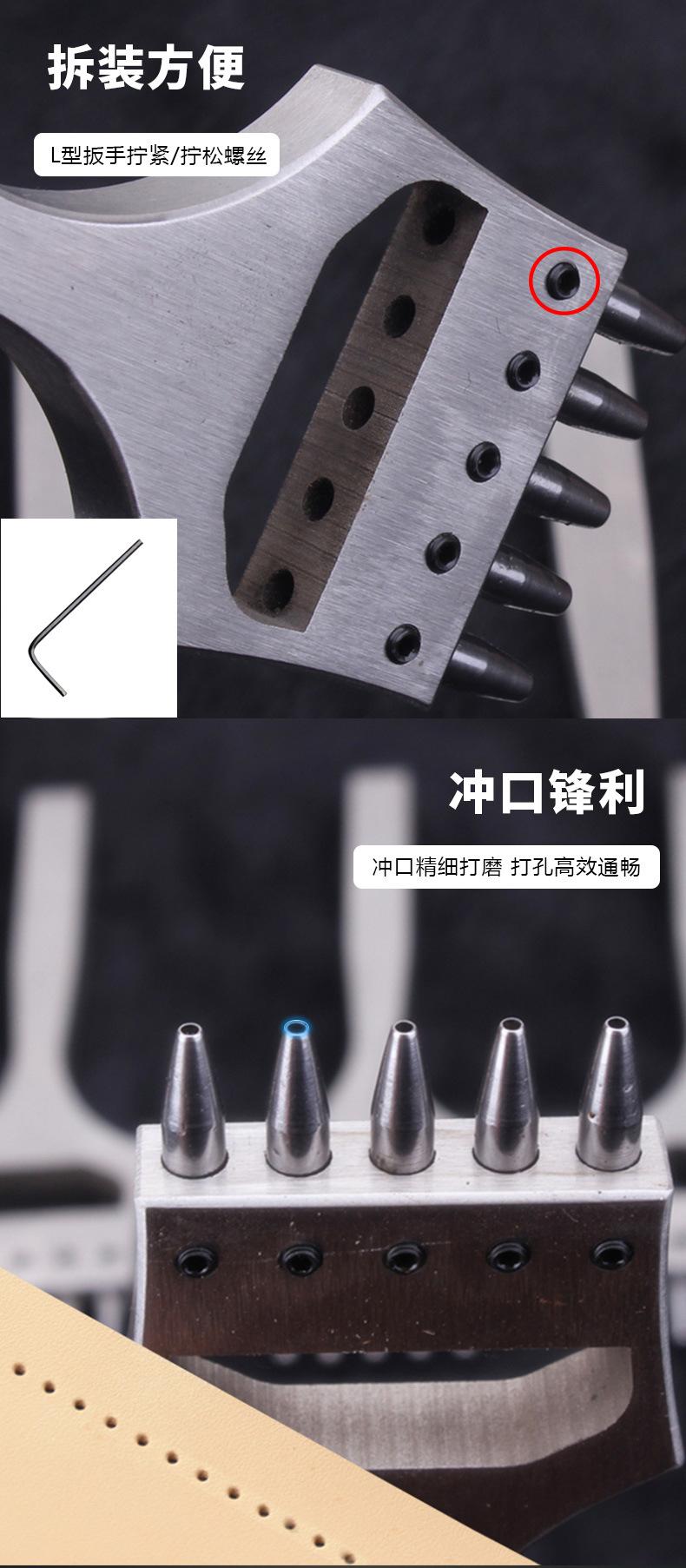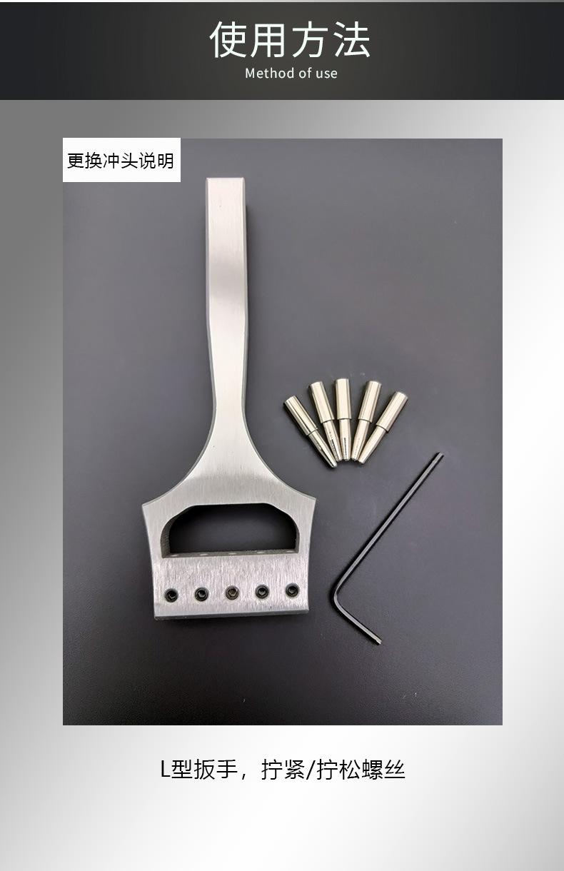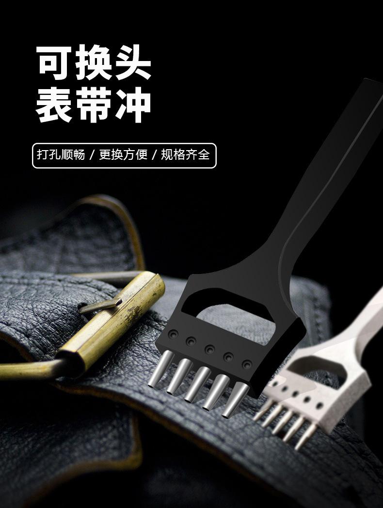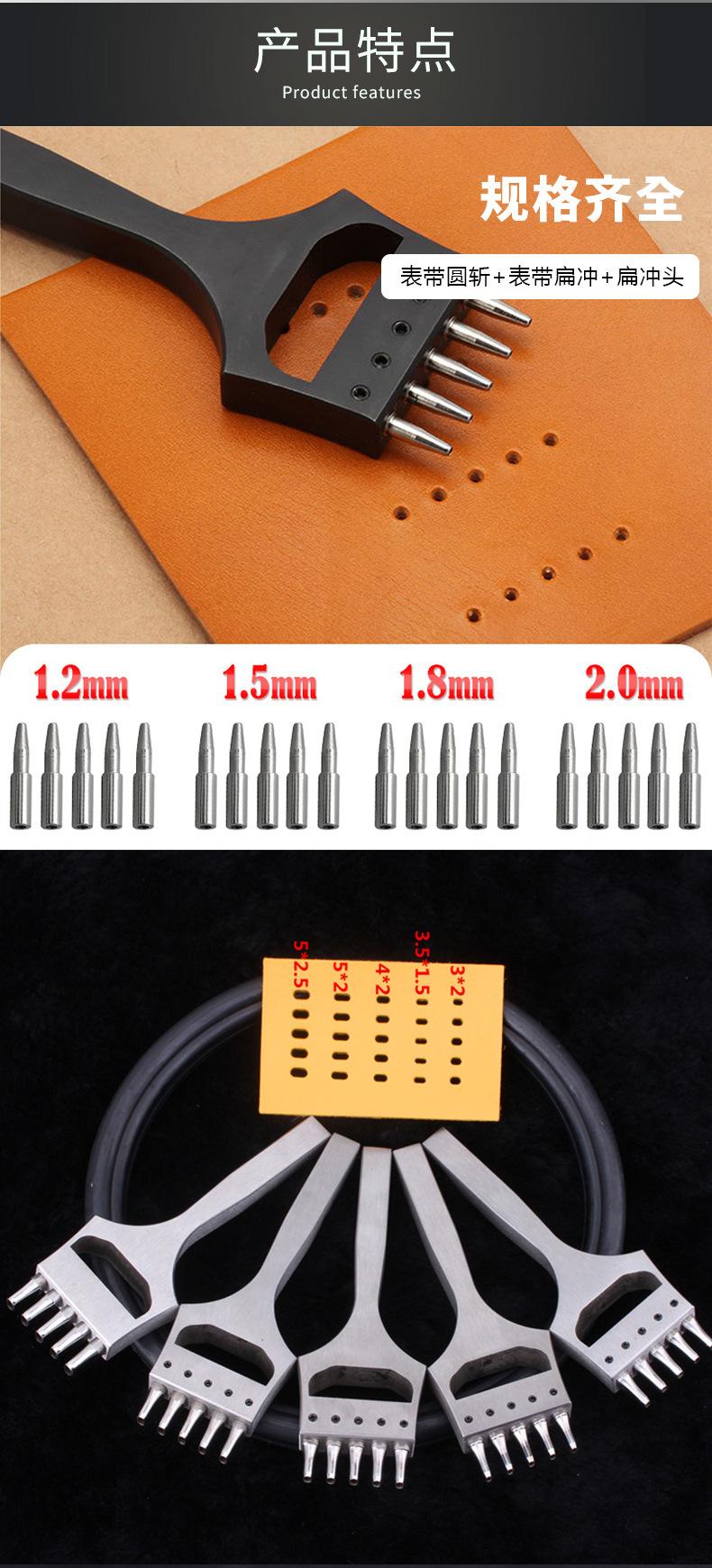 Perforadora plana con correa de águila dorada, perforadora de flores con espacio entre 6,5 y 5 agujeros, perforadora de cuero de corte redondo, perforadora de una palabra, redonda, ovalada y en fila.