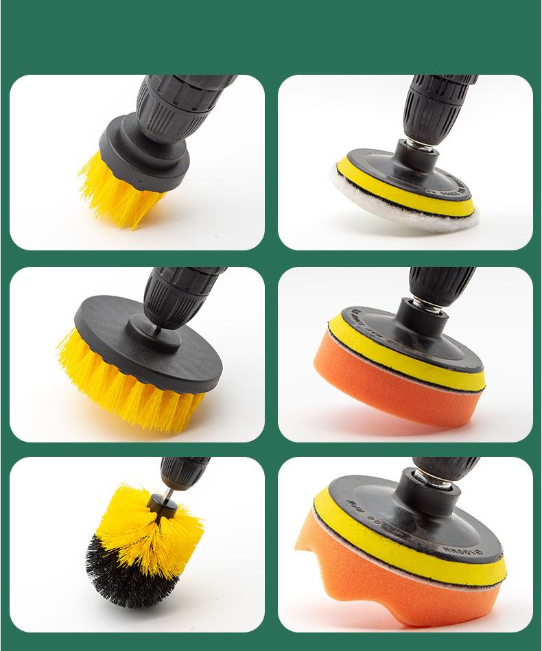 Cepillo de Limpieza Eléctrico Multifuncional para Hogar Cocina Baño Juego de Cabezales para Cepillo de Taladro Eléctrico Herramienta Cepillo para Cubo de Rueda de Coche Amarillo