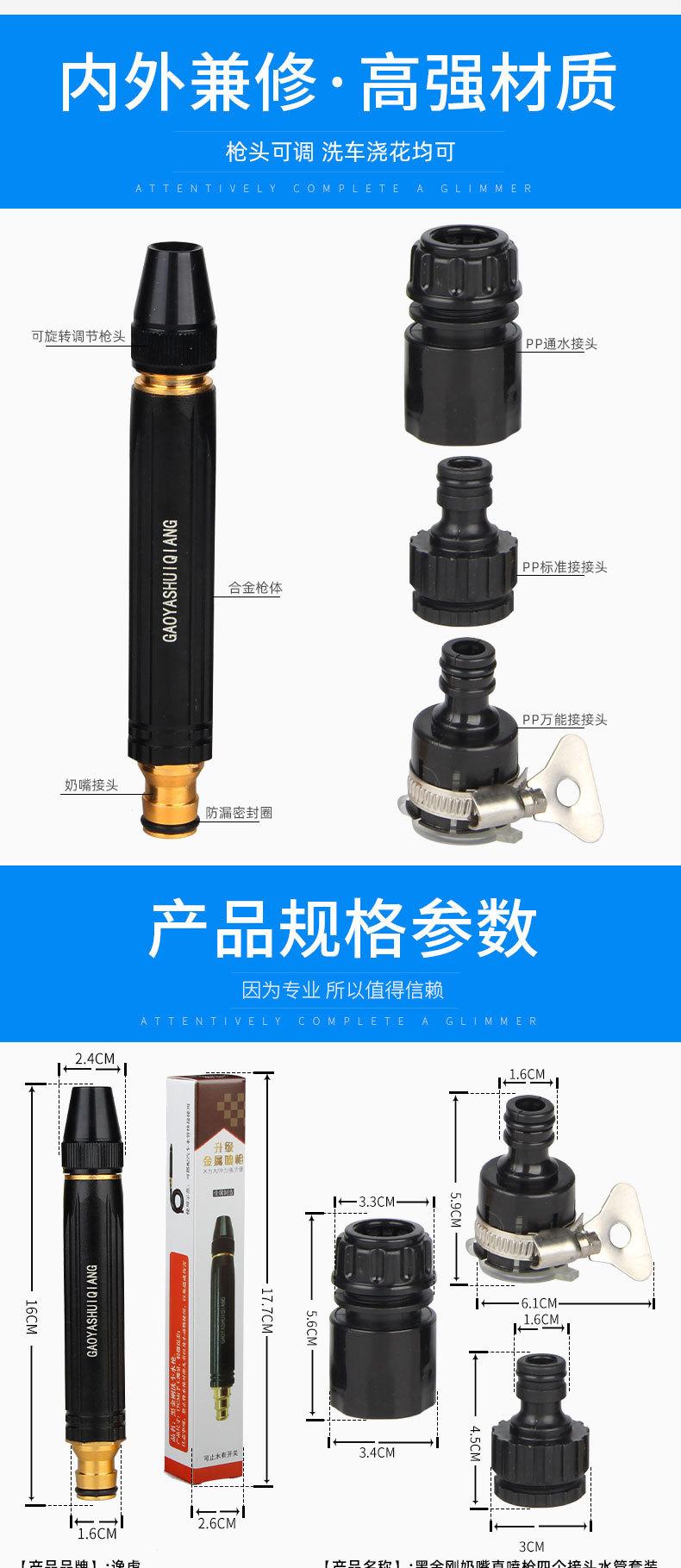 Suministro directo de fábrica Pistola de agua Black Diamond juego de conectores para manguera de agua pistola de agua para lavado de autos pistola de agua para jardín de flores juego para lavado de autos