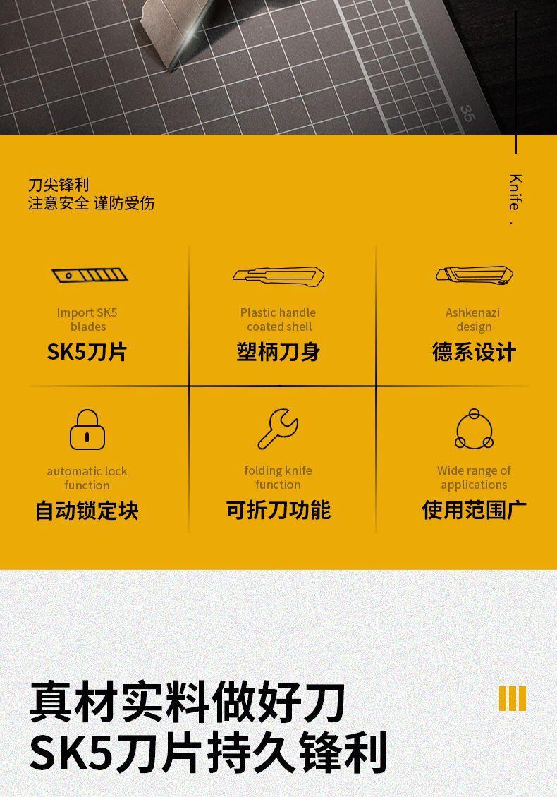 Cuchillo de arte de acero con alto contenido de carbono Deli, hoja de cuchillo de arte afilada y duradera, cabeza