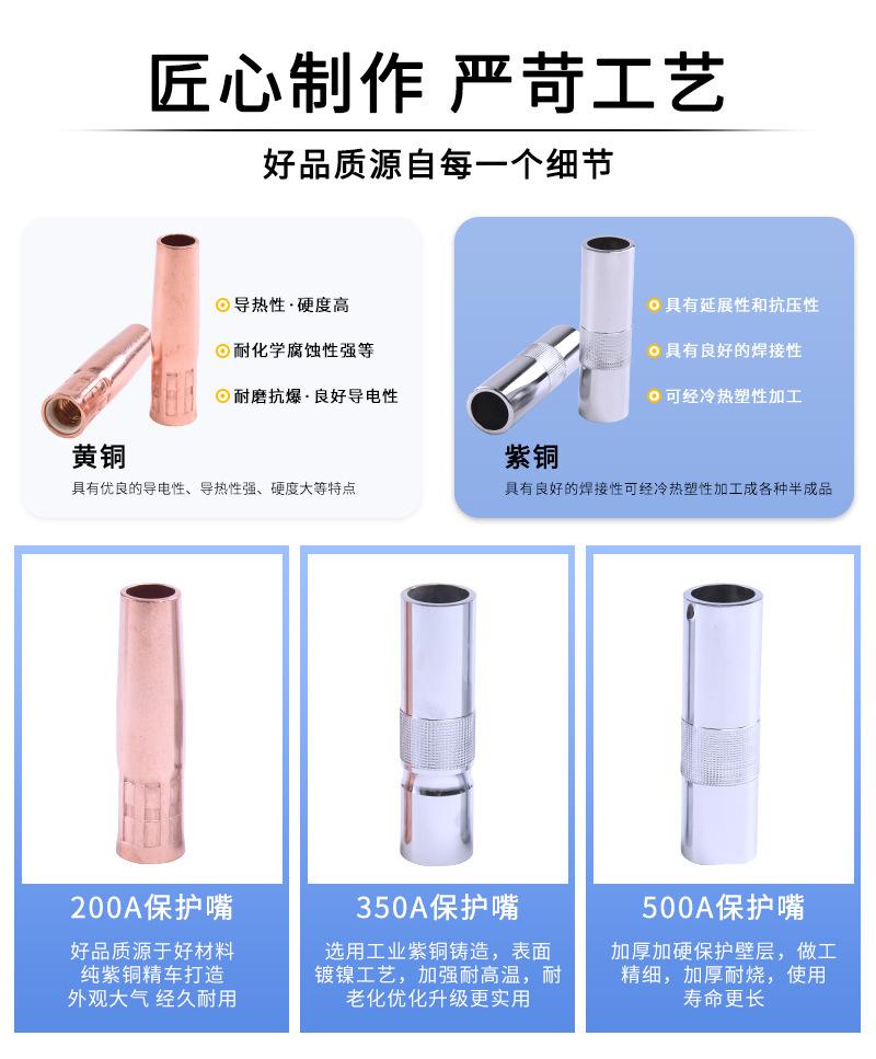 Cubierta protectora para pistola de soldadura de dióxido, pistola de soldadura protegida por gas, 200A latón, 350A cobre, 500A boquilla protectora, dos pistolas de soldadura protegidas