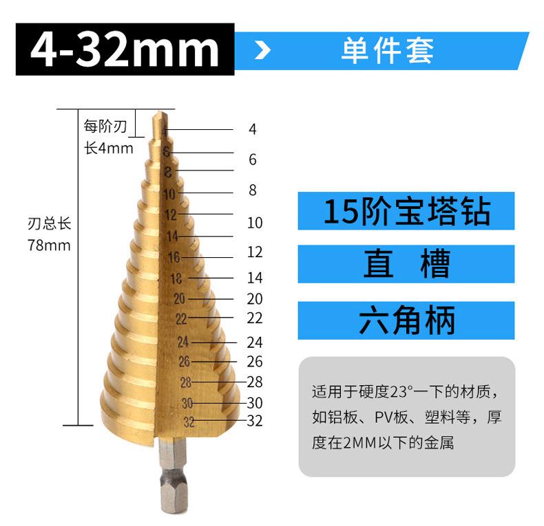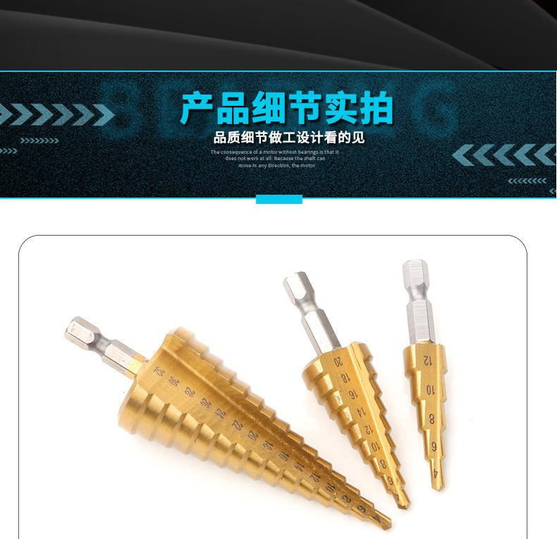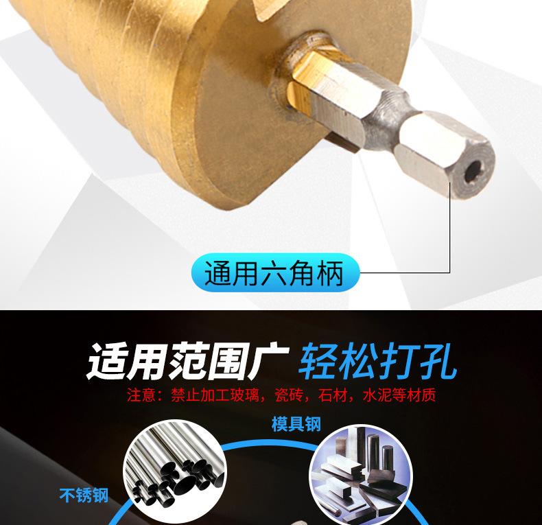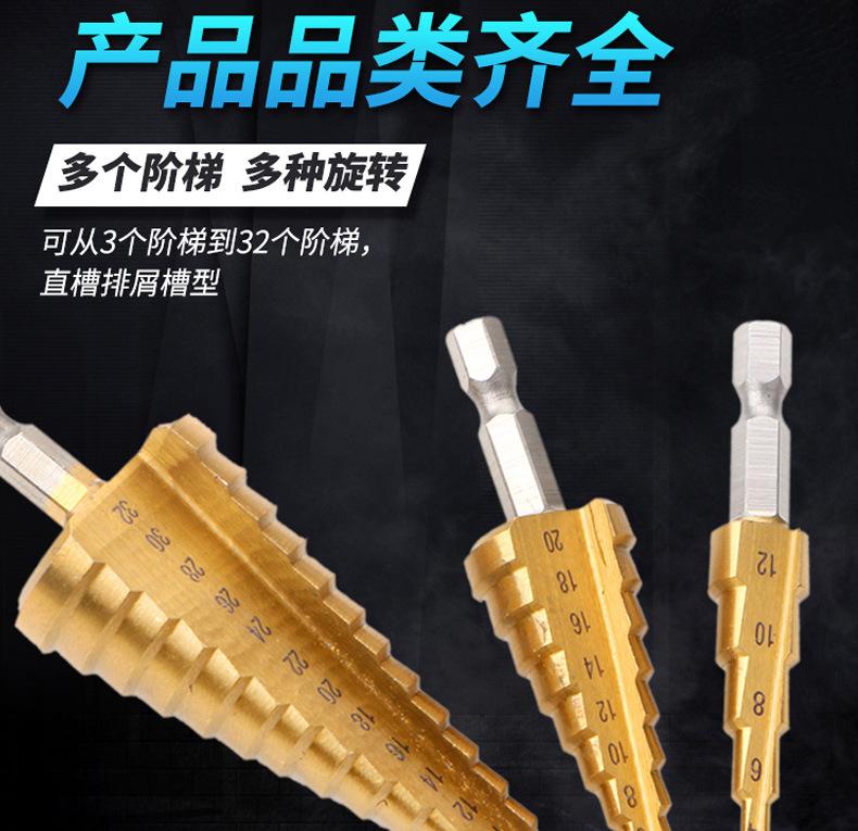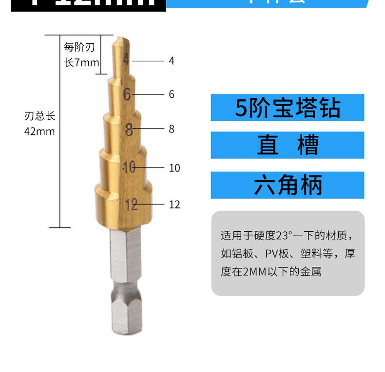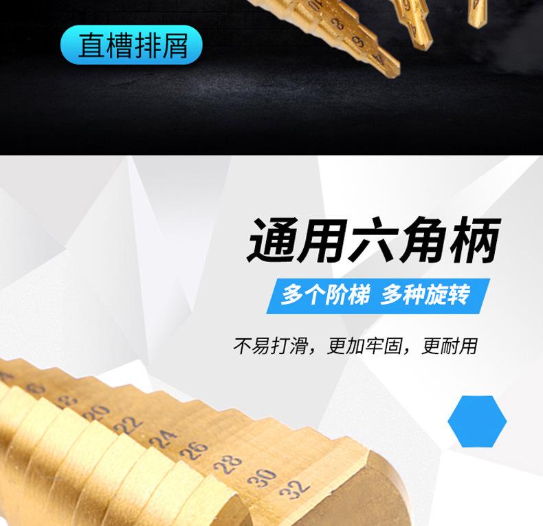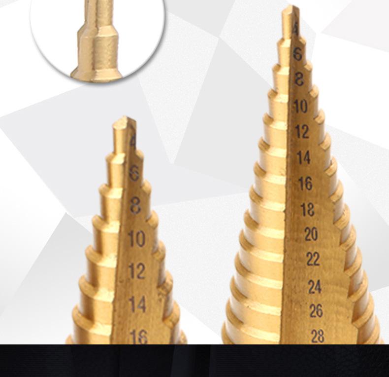 Broca escalonada de acero de alta velocidad de 4-12 mm con vástago hexagonal chapado en titanio, broca escalonada de 4-32 mm, broca pagoda de ranura recta de 4-20 mm