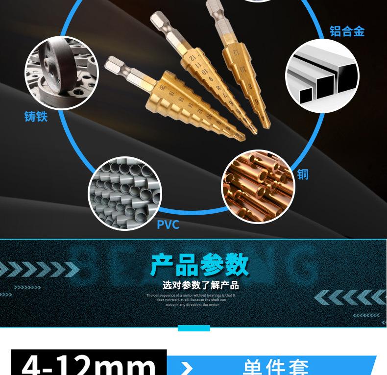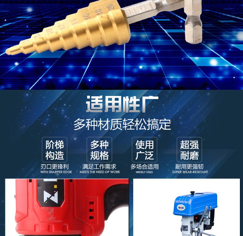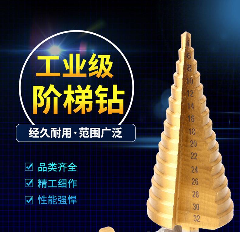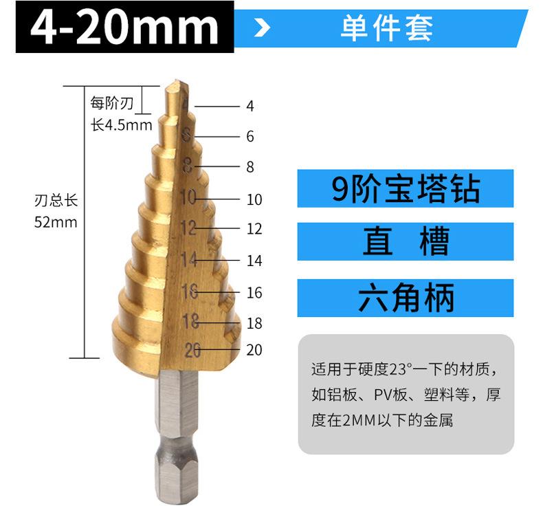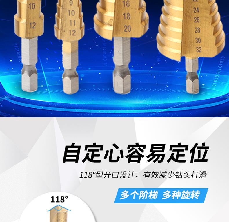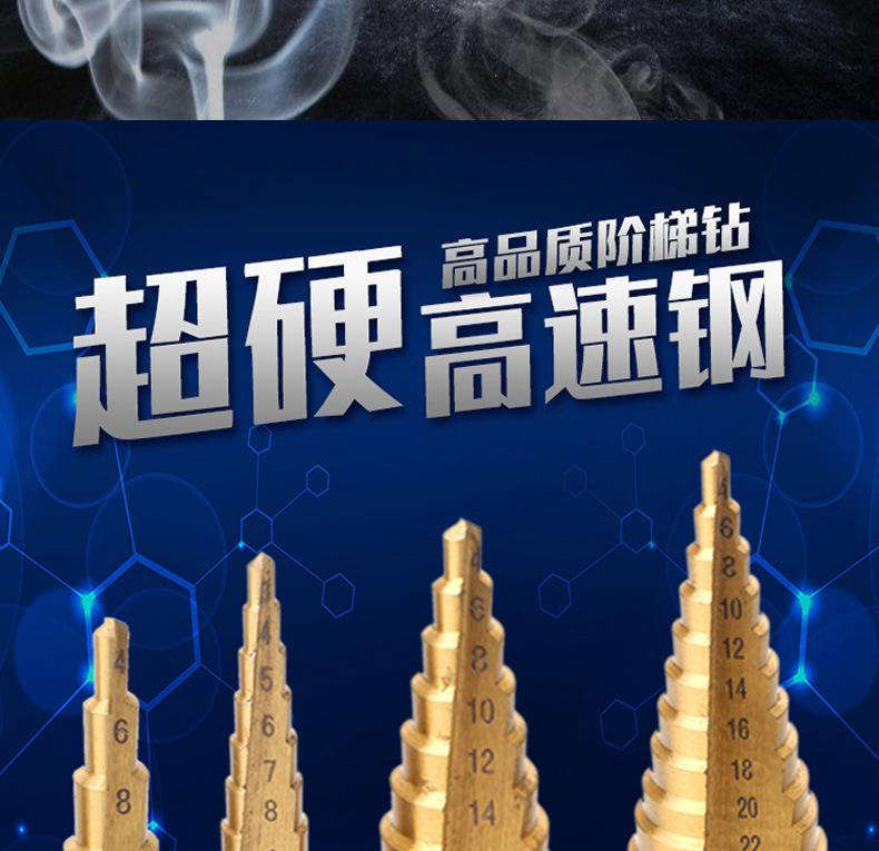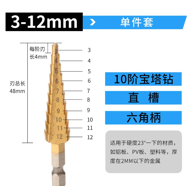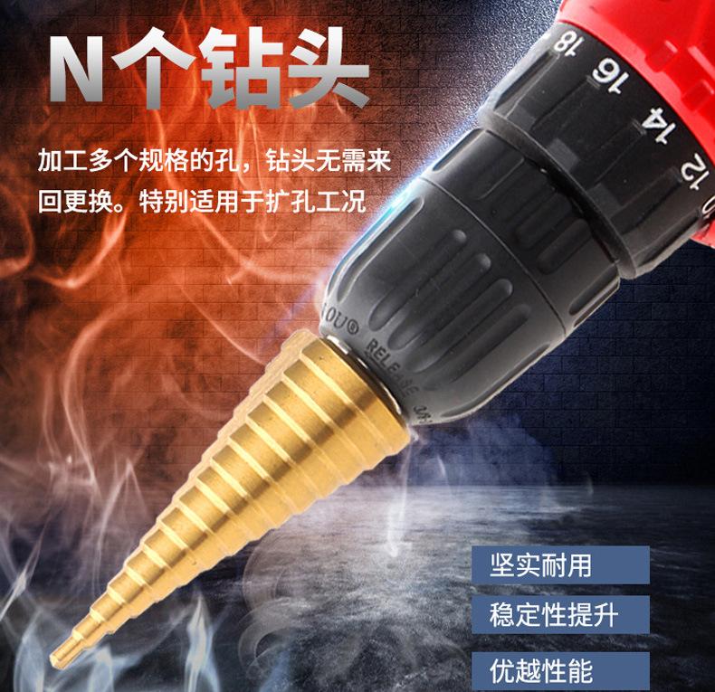 Broca escalonada de acero de alta velocidad de 4-12 mm con vástago hexagonal chapado en titanio, broca escalonada de 4-32 mm, broca pagoda de ranura recta de 4-20 mm