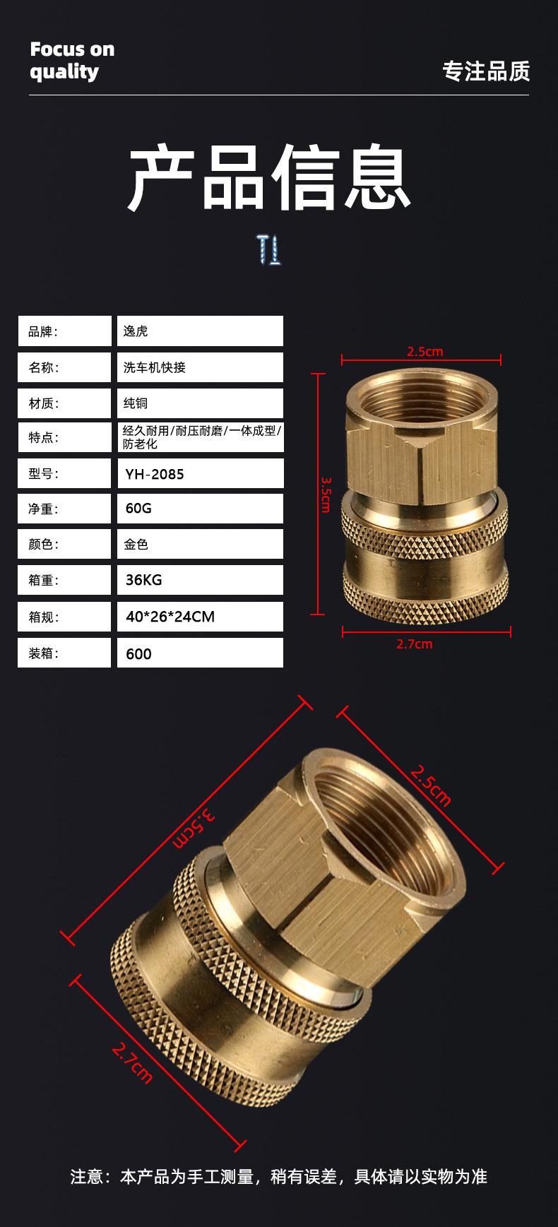 Suministro de fábrica lavadora de alta presión lavadora de coches conexión rápida de cobre 3/8 accesorios de enchufe rápido rosca interna M22 cabezal hembra grande