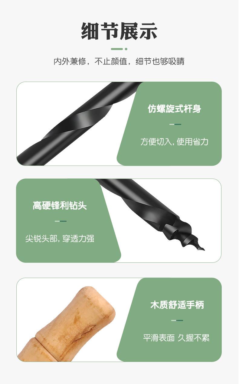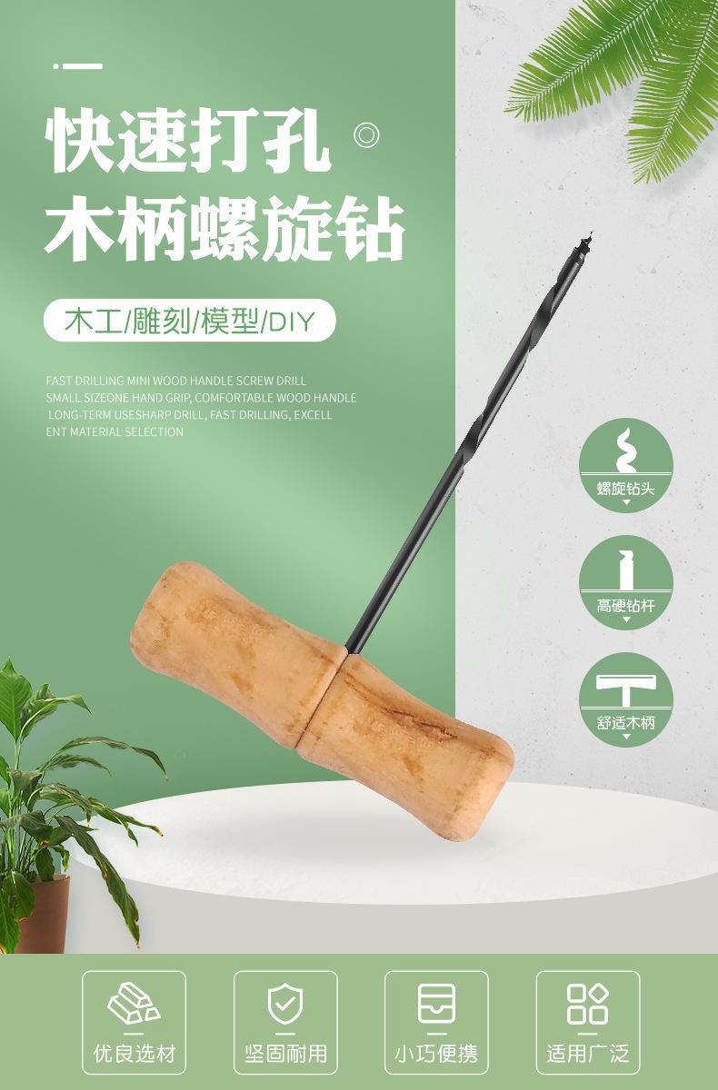 Taladro manual tipo T con mango de madera en espiral, escariador para carpintería, punzonado, modelo de plástico PVC, tallado, herramienta para hacer agujeros DIY