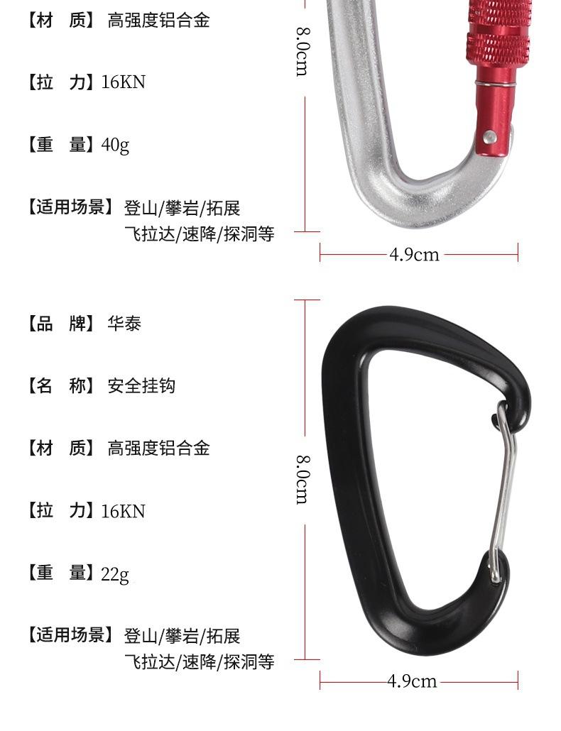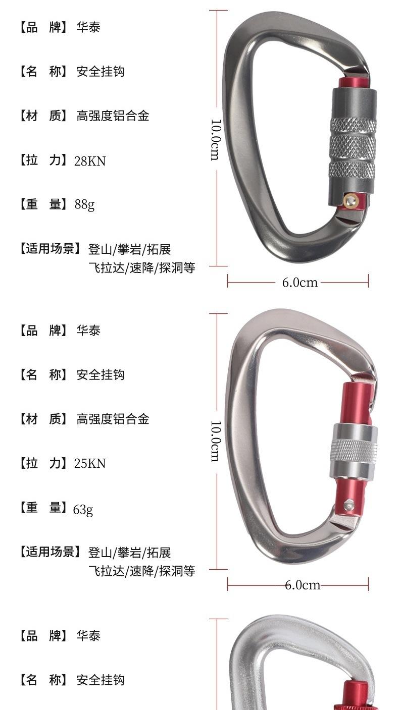 Hebilla de conexión de seguridad para equipo de escalada en roca al aire libre, gancho de cuerda, hebilla de montañismo, hebilla de seguridad con cierre de resorte tipo D de aleación de aluminio