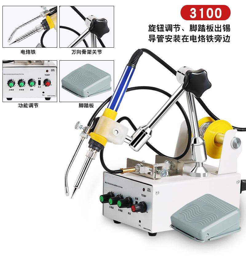 Soldador industrial con regulación de temperatura 3100 calentamiento interno máquina de soldadura automática alimentador de estaño pedal estación de soldadura de temperatura constante