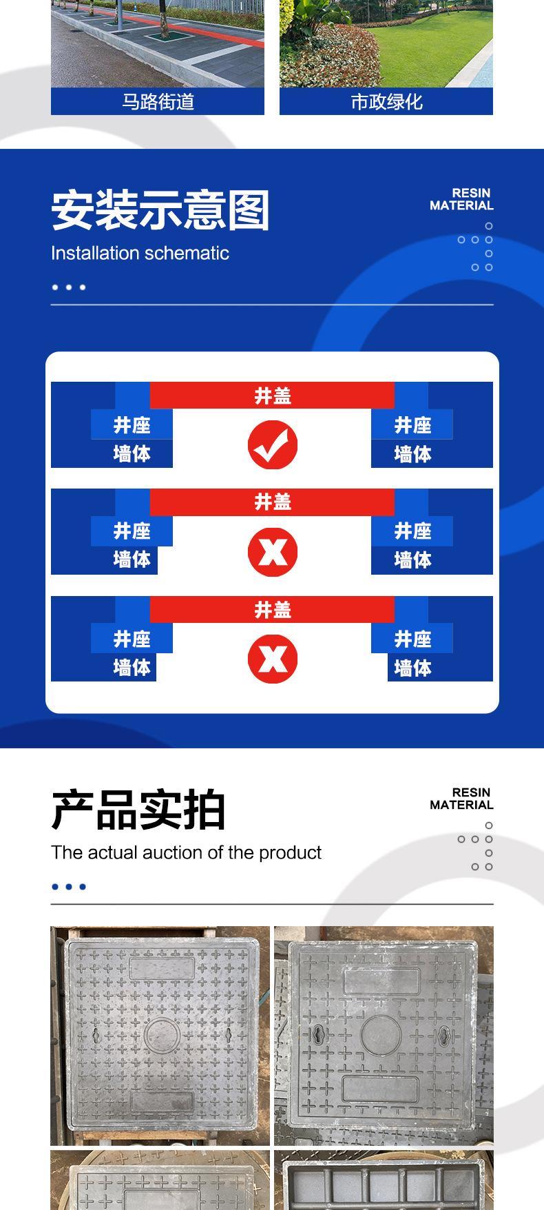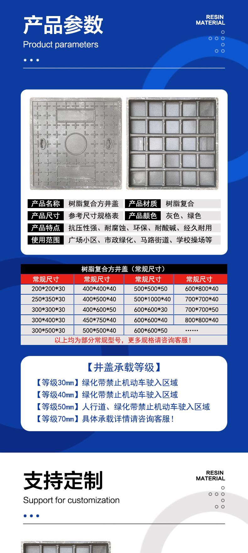 Suministro directo de fábrica de tapas de registro de resina compuesta de múltiples especificaciones, tapas de registro eléctricas, pozos de drenaje paisajísticos con marco inferior, fabricante