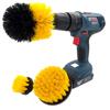 Yellow; 3-piece electric drill brush set; plastic, Yellow; 1inch pointed brush; plastic, Yellow; 1inch flat he...