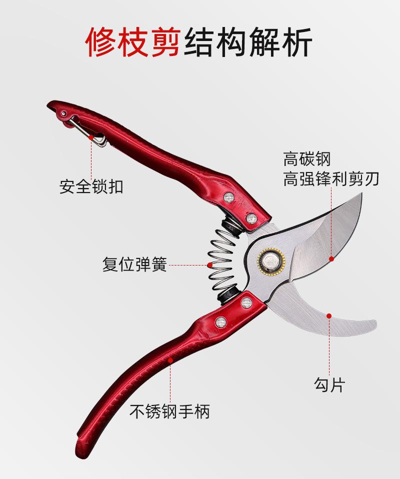 Tijeras florales al por mayor de fábrica, tijeras para ramas de fruta, tijeras para ramas gruesas de flores, tijeras de podar, tijeras de acero, tijeras pico de pájaro, tijeras de jardín para árboles frutales