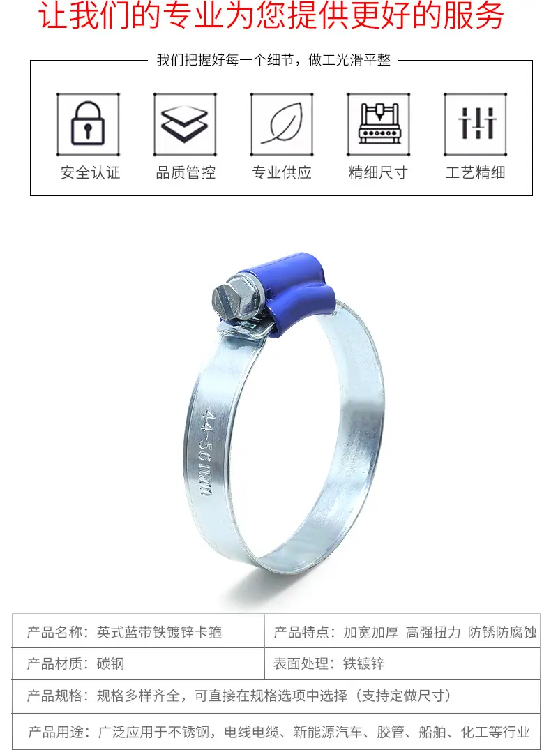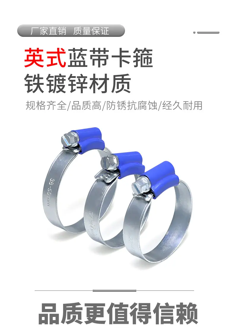 Fabricante ABA Blue Ribbon Throat Hoop, hierro británico galvanizado, abrazadera fuerte, sujeción para tubería de agua, aro, hebilla de fijación para manguera