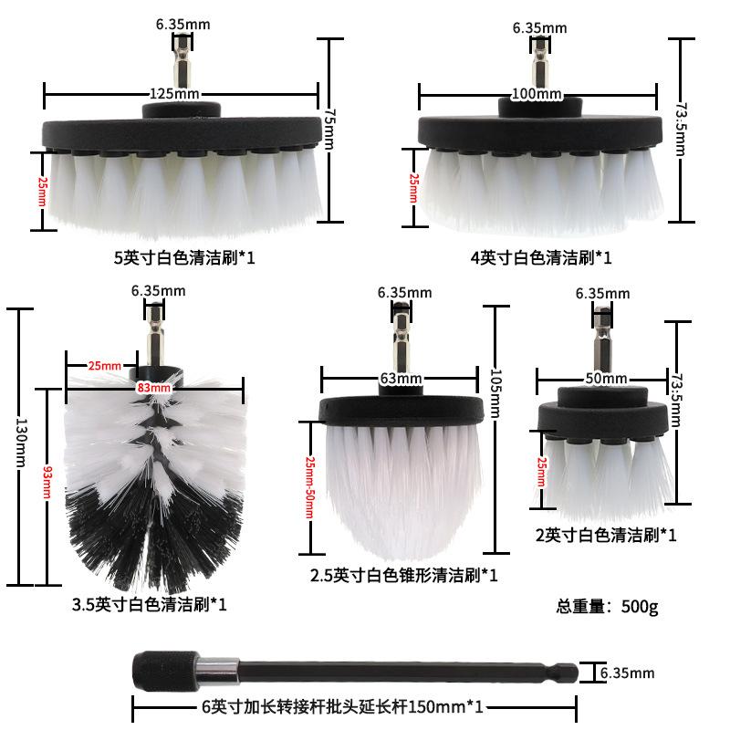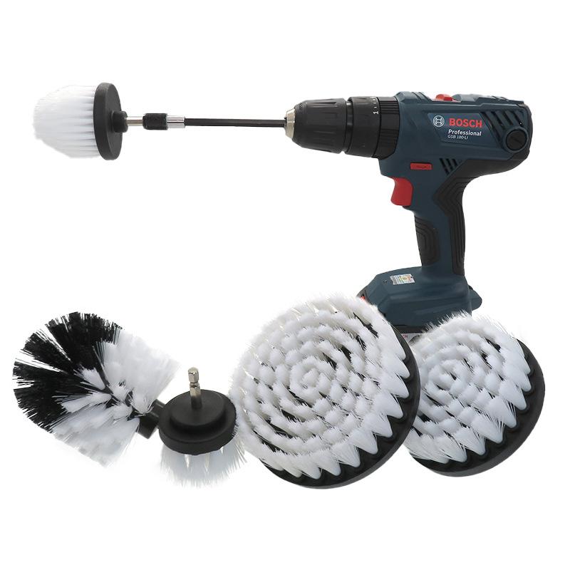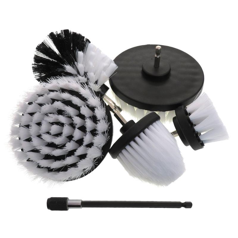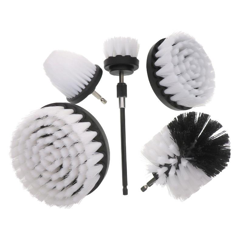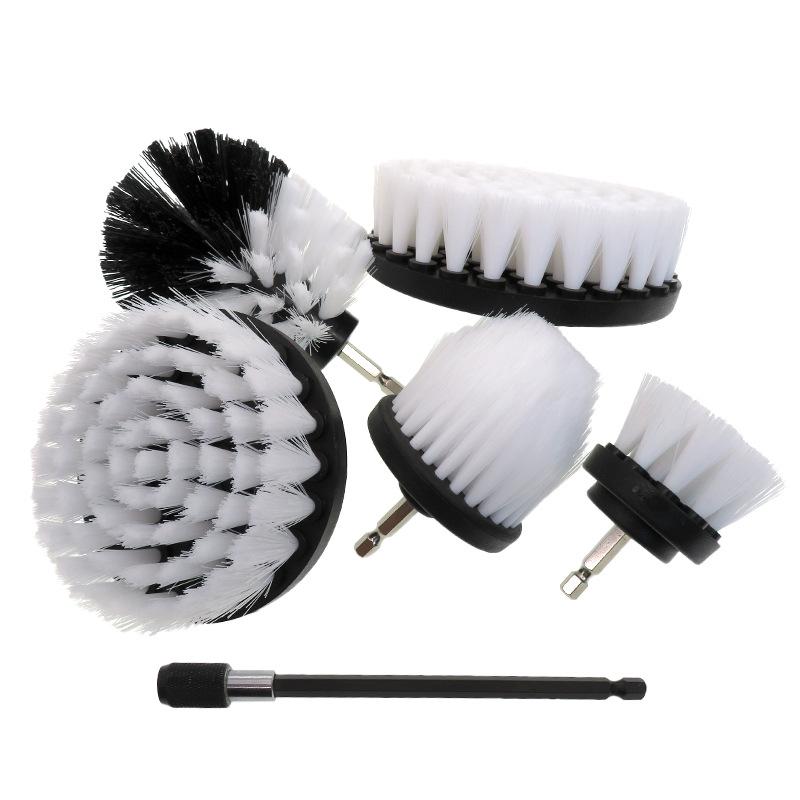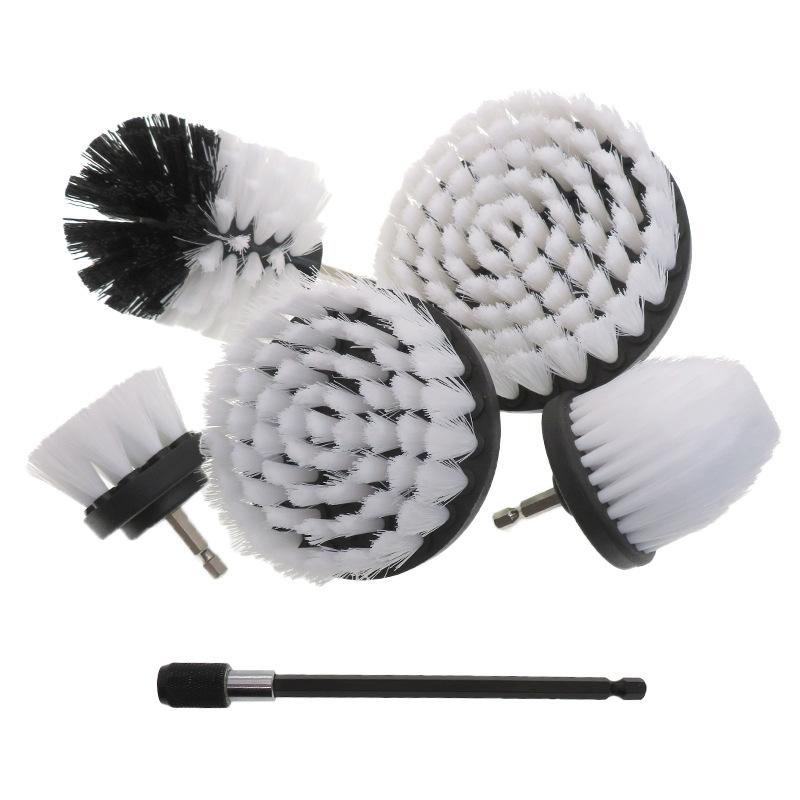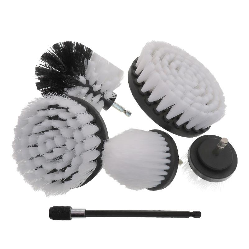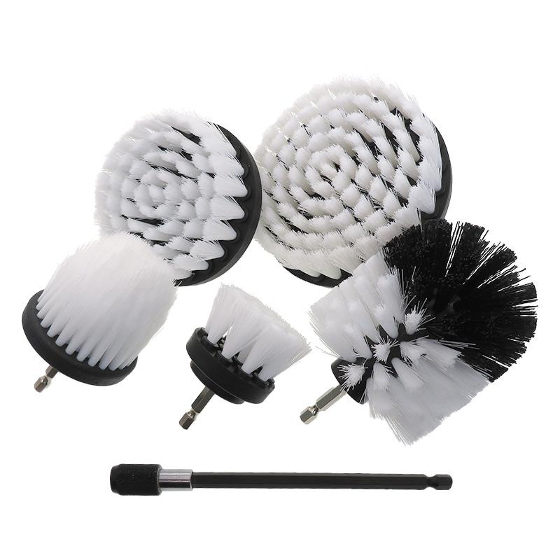 White; 6-piece set of electric drill brush heads (tapered); pp, Yellow; 6-piece set of electric drill brush he...