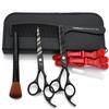 7.Versión mejoradatijeras planasJuego de 6 piezas tipo B, sombrero rosa azul, tijeras planas, tijeras de dientes, bolso,Peine de doble cara, paño,Paño de limpieza.