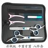 8.Versión mejoradatijeras planasJuego de 8 piezas tipo B, sombrero rosa azul, tijeras planas, tijeras de dientes, bolso,2Clip de partición, peine de cola puntiaguda, peine para cortar el pelo, herramienta para flequillo。