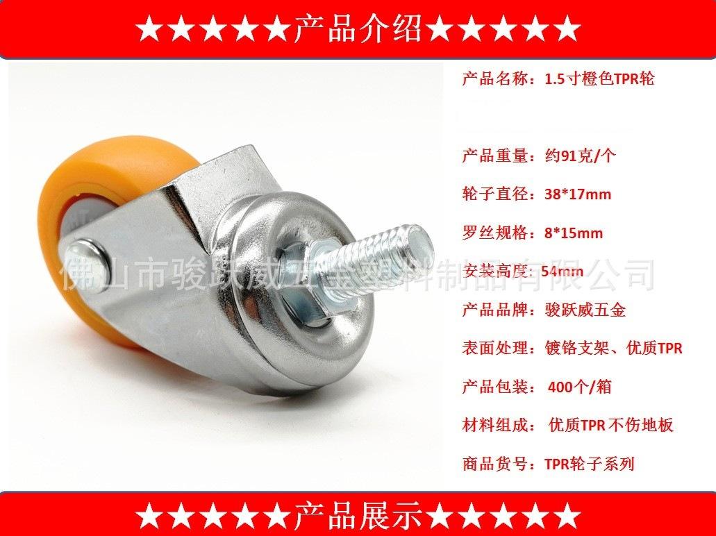 Nuestra fábrica se especializa en la producción de ruedas (pesadas, medianas, ligeras e industriales), bisagras de cama, bisagras, patas ajustables, plástico y otros accesorios para muebles. También diseñamos y producimos según las necesidades del cliente, y procesamos y fabricamos diversas ruedas con formas especiales según muestras y planos del cliente en cualquier momento. Mantenemos la filosofía empresarial de "el cliente es lo primero, seguimos avanzando" y nos adherimos al principio de "el cliente es lo primero" para brindar servicios de alta calidad a nuestros clientes.
