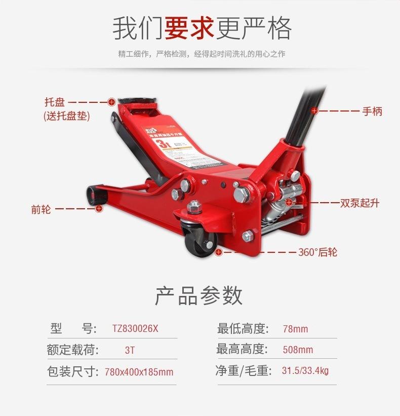 Tongrun Bigred Elevador Rápido de Mano 3 Toneladas Reparación de Automóviles Reemplazo de Neumáticos Ultrabajo Horizontal Hidráulico 0kg Superior