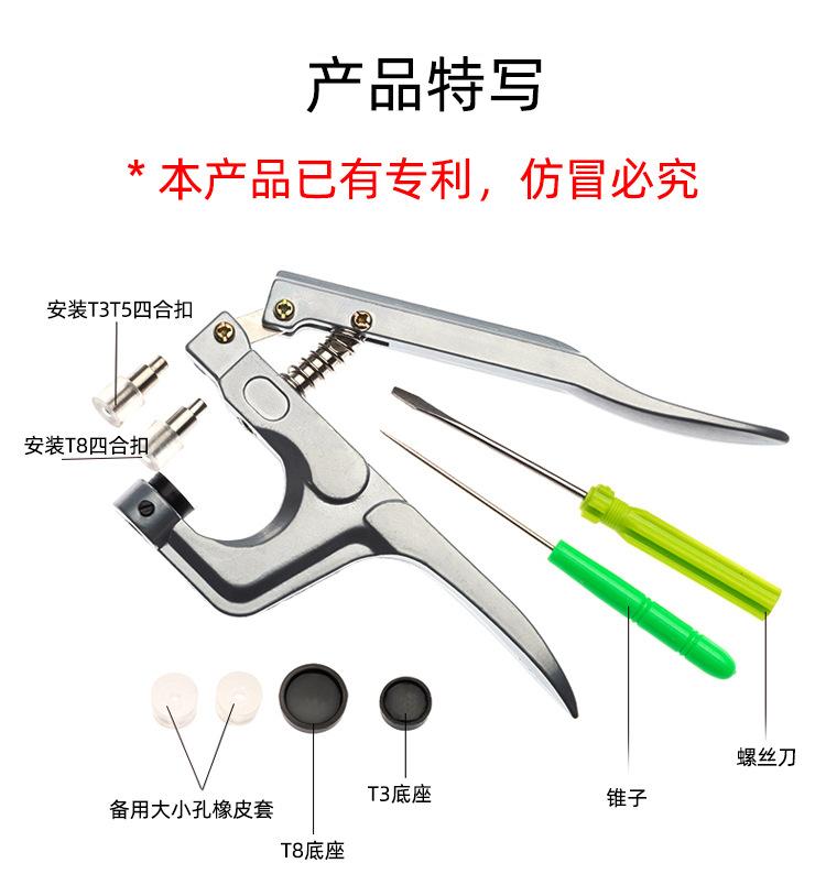 Alicates de mano de cuatro botones Removible T3/T5/T8 botón de resina plástica prensa de mano Alicates de prensa Herramienta de instalación
