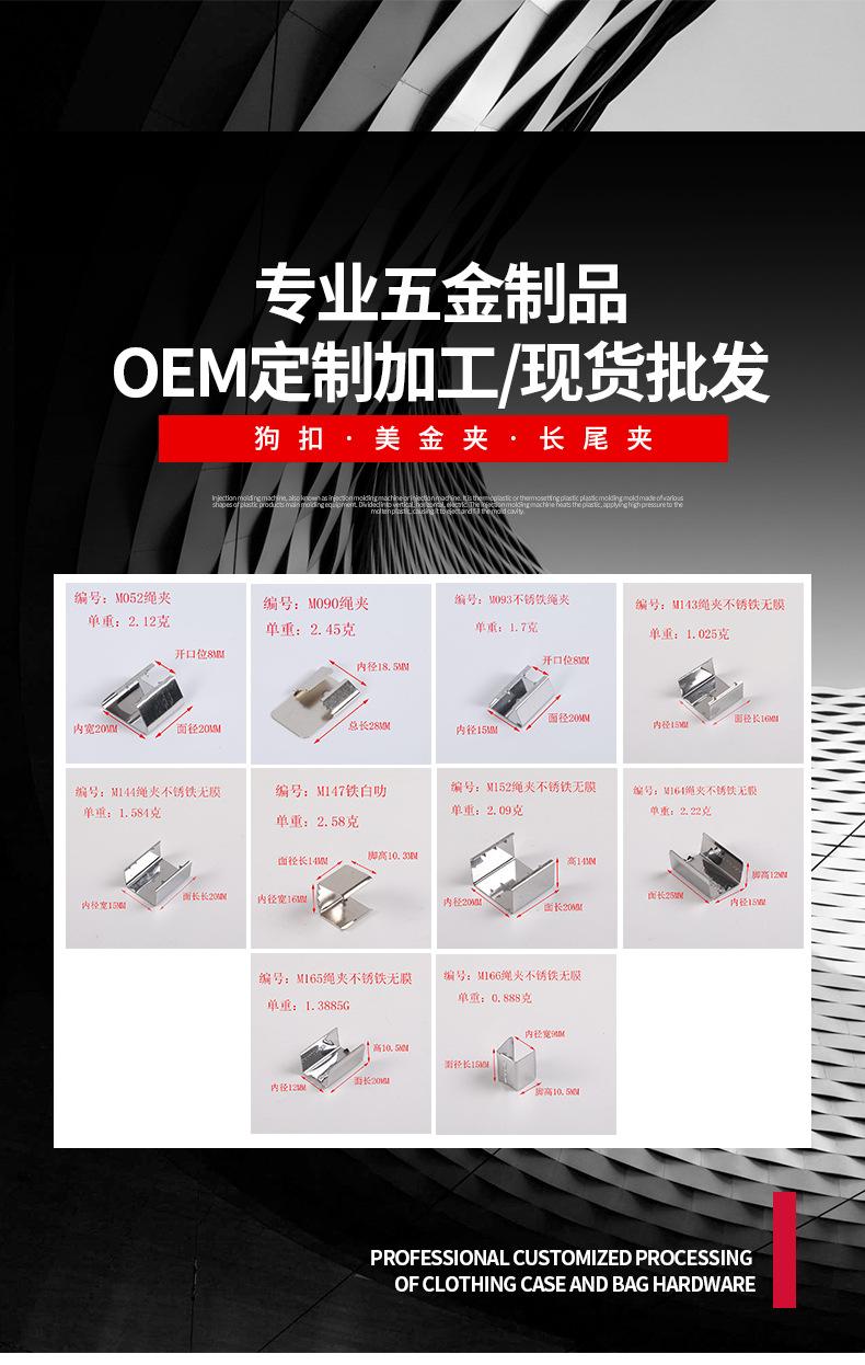La Fábrica de Productos Metálicos Foshan Nanhai Jindonghong es una empresa especializada en la producción y procesamiento de hebillas de boca de pez, hebillas de placa, hebillas superiores, hebillas de langosta, hebillas de abrazadera, clips de marca, clips para nombres escolares, clips de cola larga, clips de cuerda, clips de jinete, clips para cheques, clips para dólares, clips para billeteras y otros productos. Cuenta con un sistema de gestión de calidad completo y científico. La integridad, la solidez y la calidad de sus productos son reconocidas por la industria. Invitamos a amigos de todos los ámbitos a visitarnos, guiarnos y negociar.