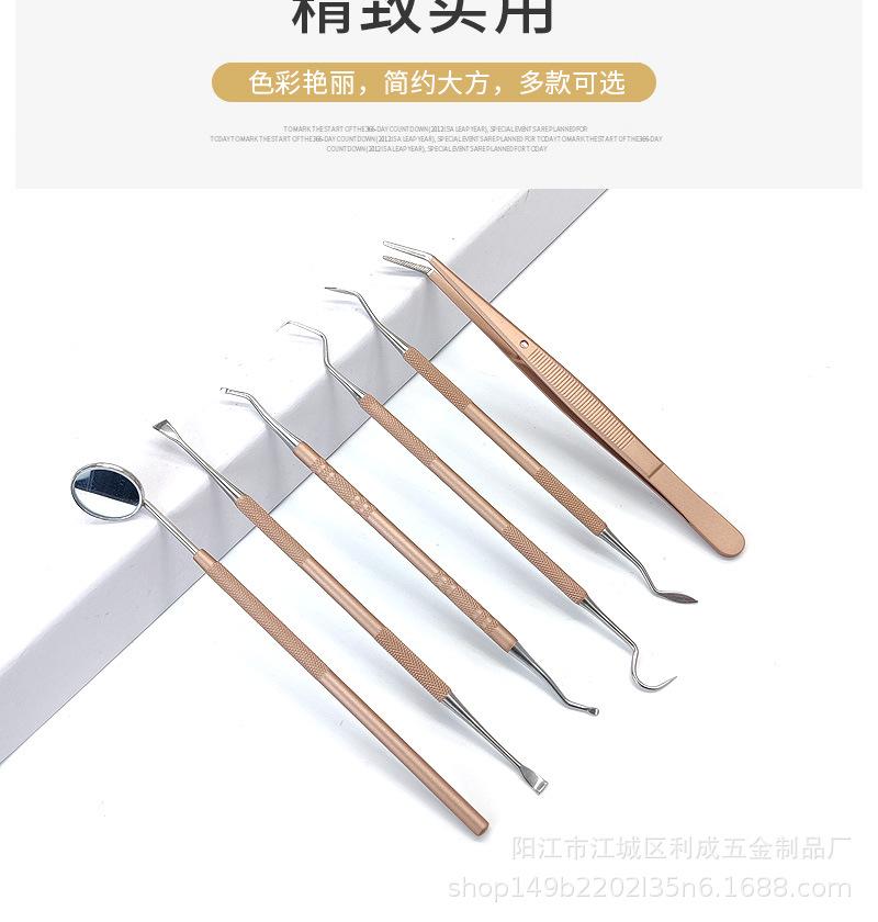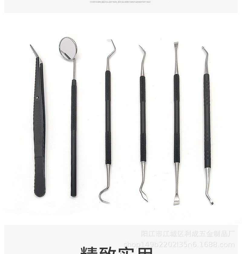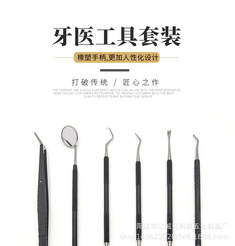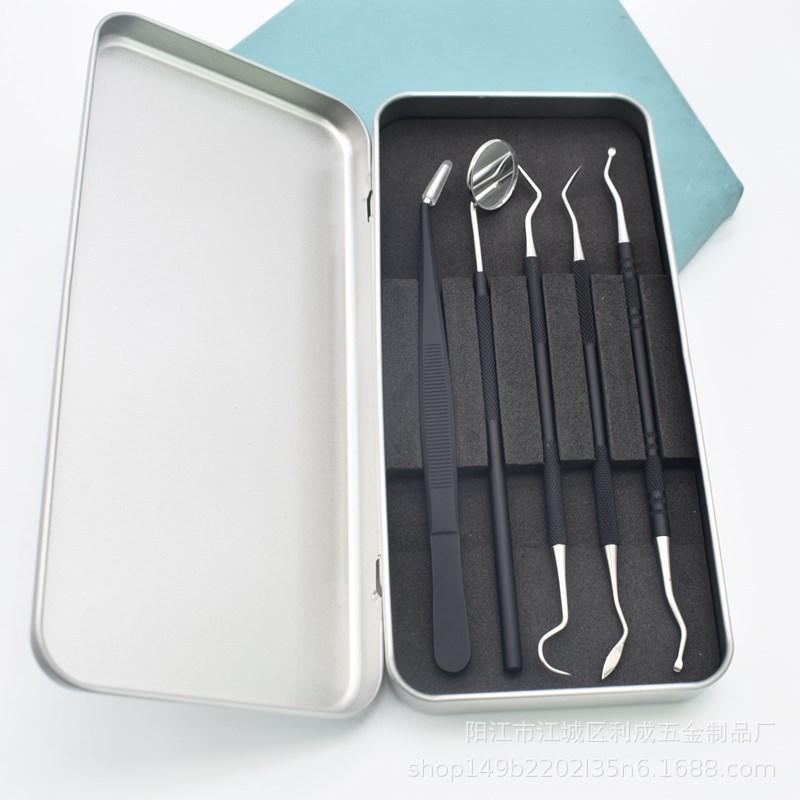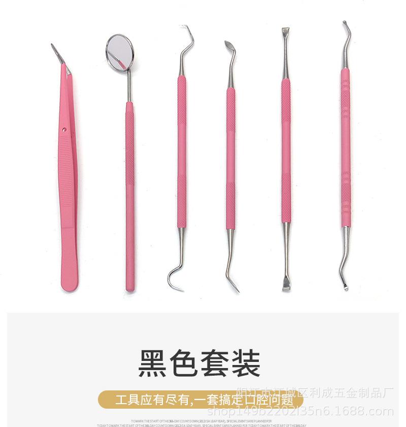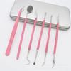 Juego de Herramientas Dentales de 6 Piezas de Acero Inoxidable Prefabricado por el Fabricante con Mango de Goma y Plástico Pintado con Aerosol para Dentista Cuidado Bucal