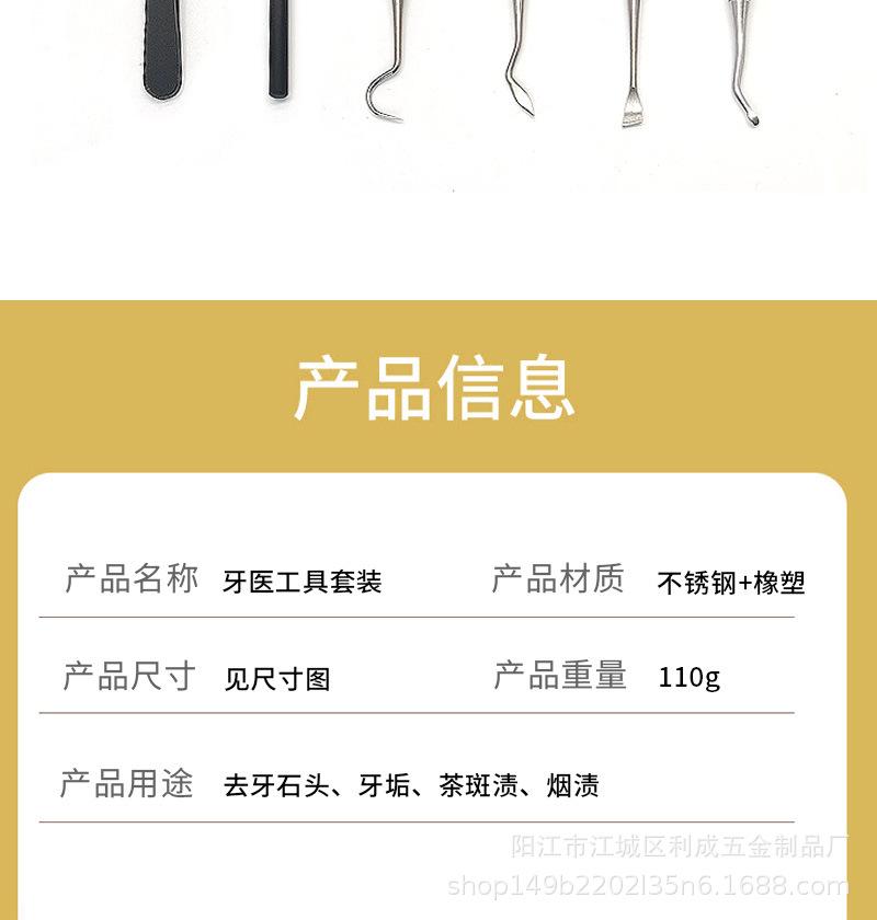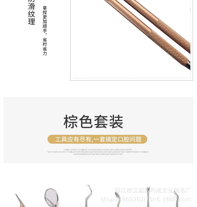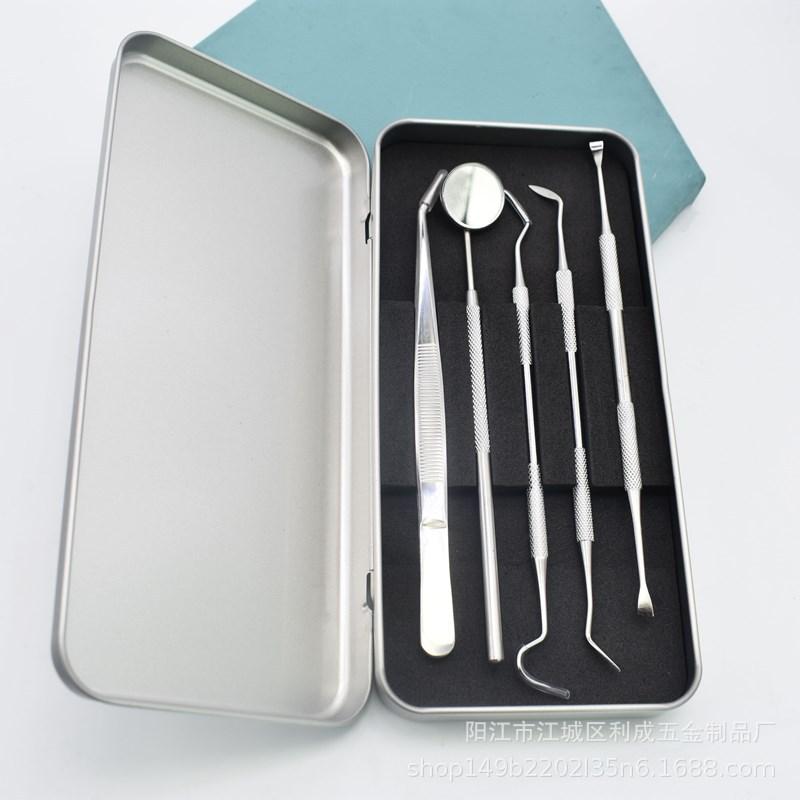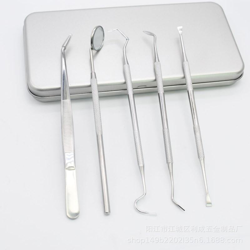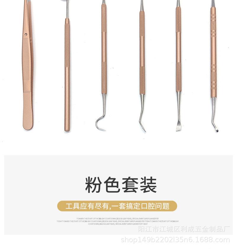 Juego de Herramientas Dentales de 6 Piezas de Acero Inoxidable Prefabricado por el Fabricante con Mango de Goma y Plástico Pintado con Aerosol para Dentista Cuidado Bucal