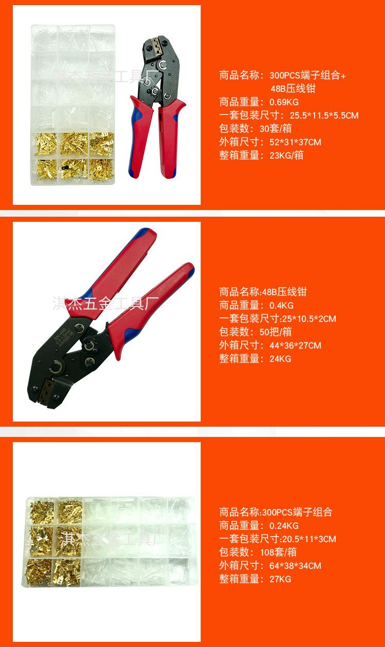 300PCs plug spring terminal combination, Red and blue two-color 48B crimping pliers, 300PCs plug spring termin...