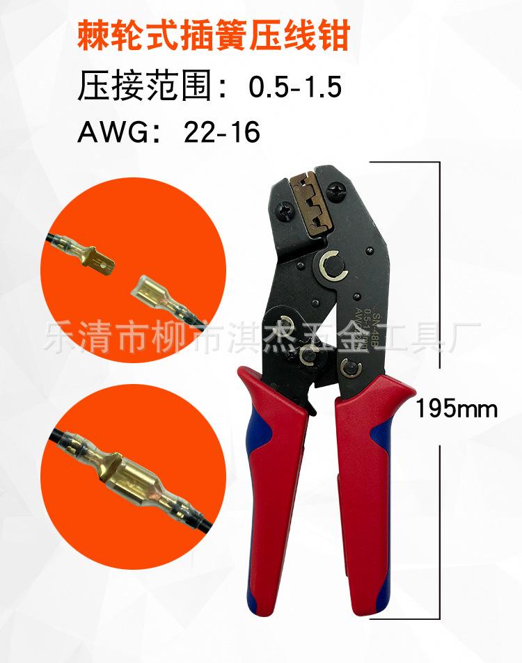 Alicates de crimpado de terminales, herramienta de crimpado 48B, alicates de prensado en frío, 300 piezas, alicates de crimpado de terminales con resorte de enchufe, adecuados para alicates de crimpado pelacables.