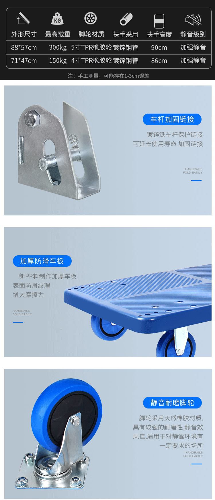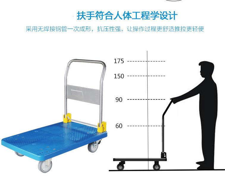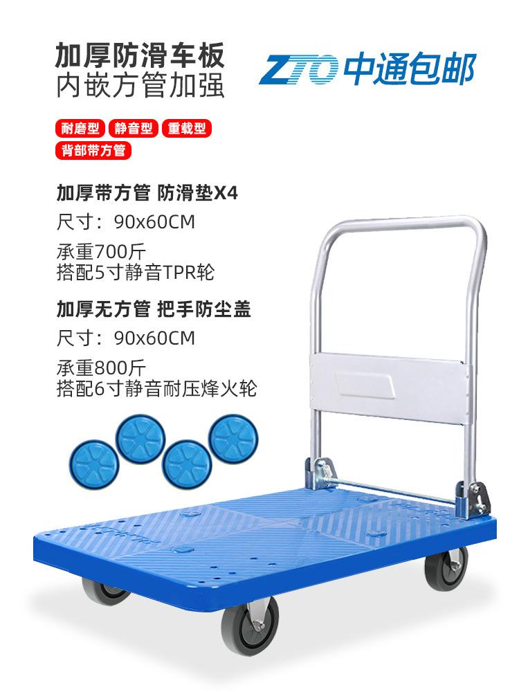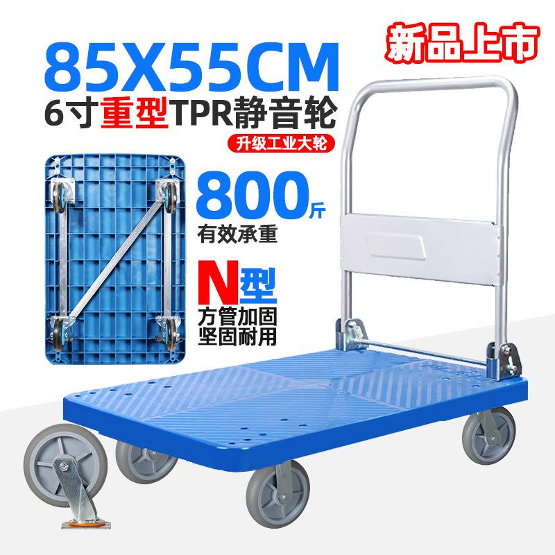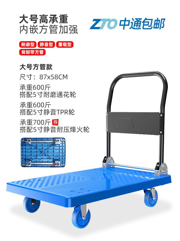 Carretilla plegable de plataforma plana con protector de manos de esponja, remolque para el hogar, carrito pequeño, carrito silencioso