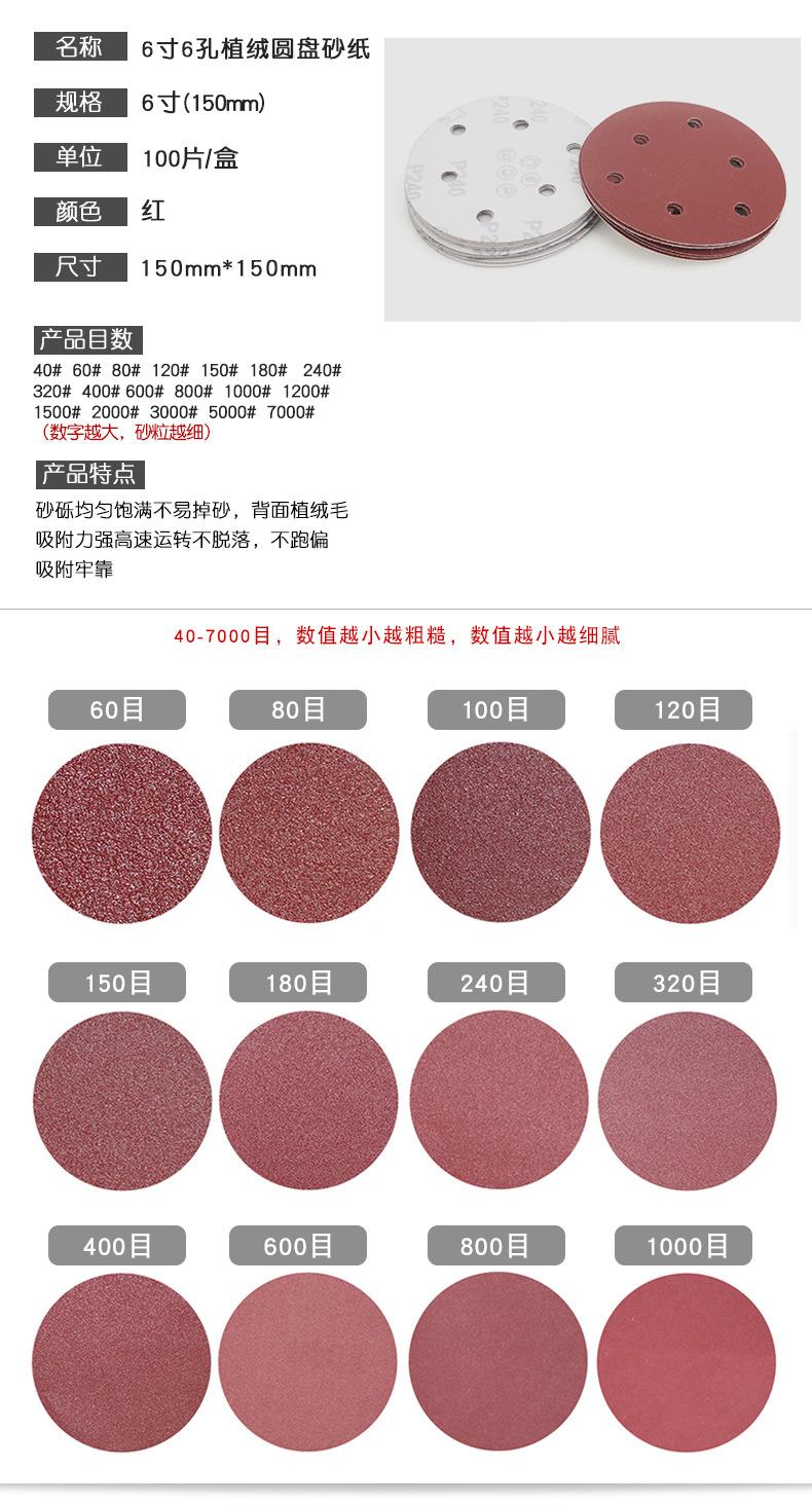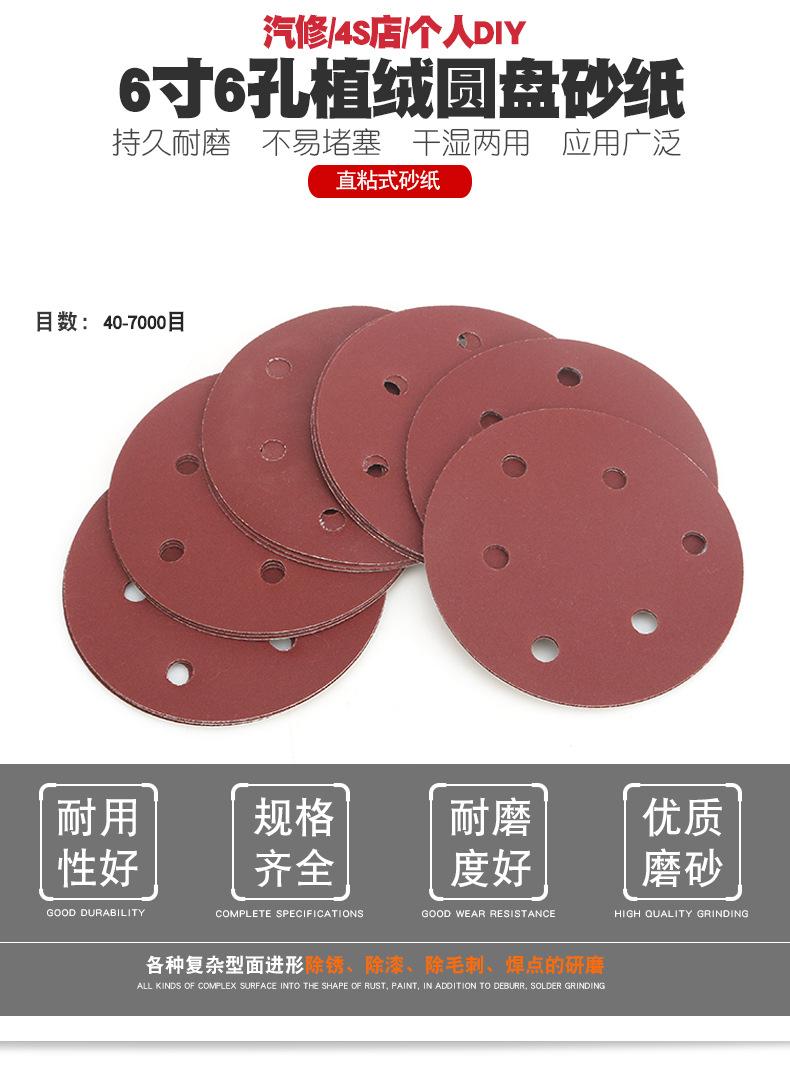 Lijadora neumática eléctrica de 6 pulgadas, pulidora de disco, lija en seco, pulido cepillado, papel de lija flocado, lija redonda de 150