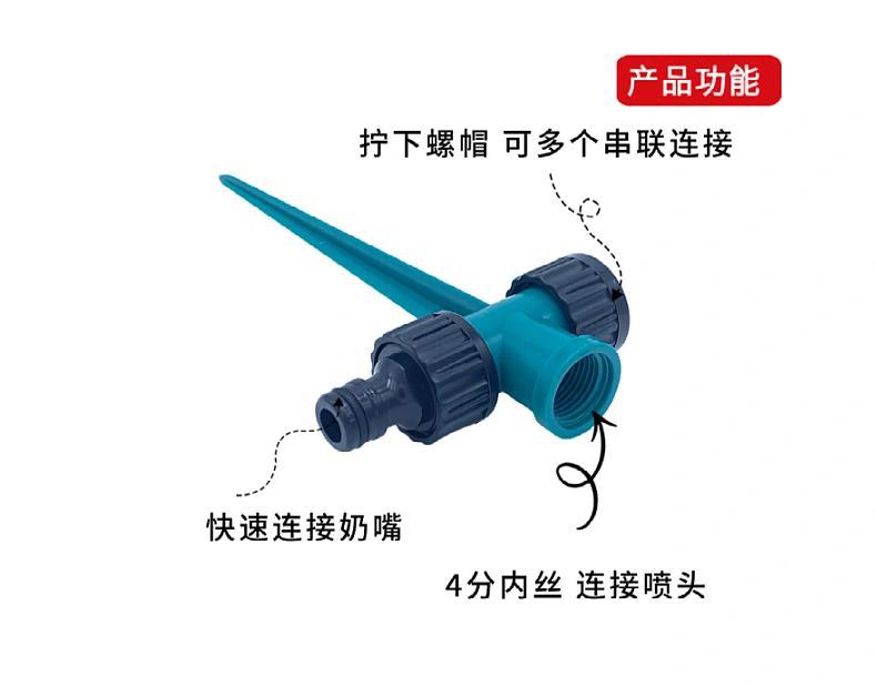 Aspersor de césped de 4 puntos, aspersor de estaca para suelo, soporte para aspersor de jardín, conexión de serie de riego con pin