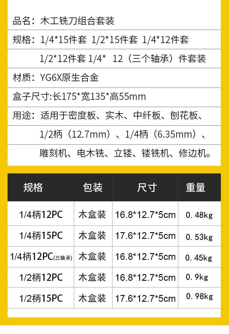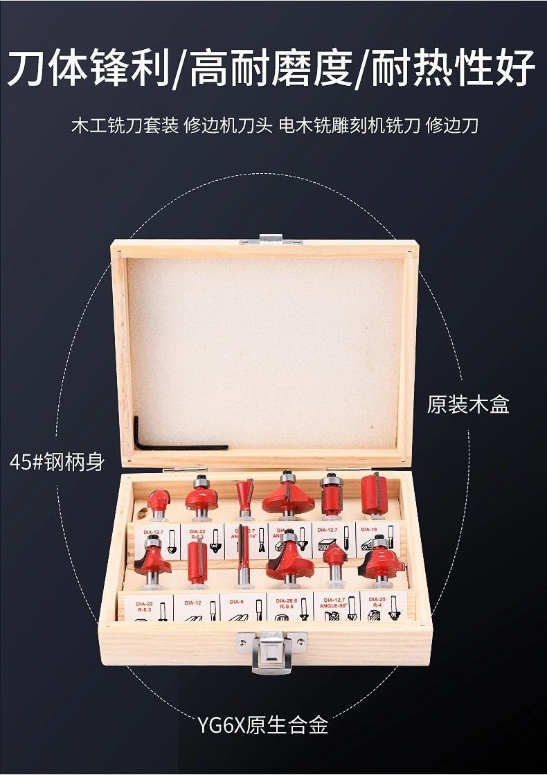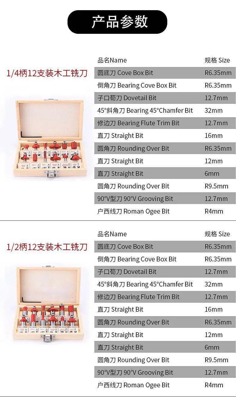 Woodworking milling cutter set of 12 pieces [6.35 handle]]