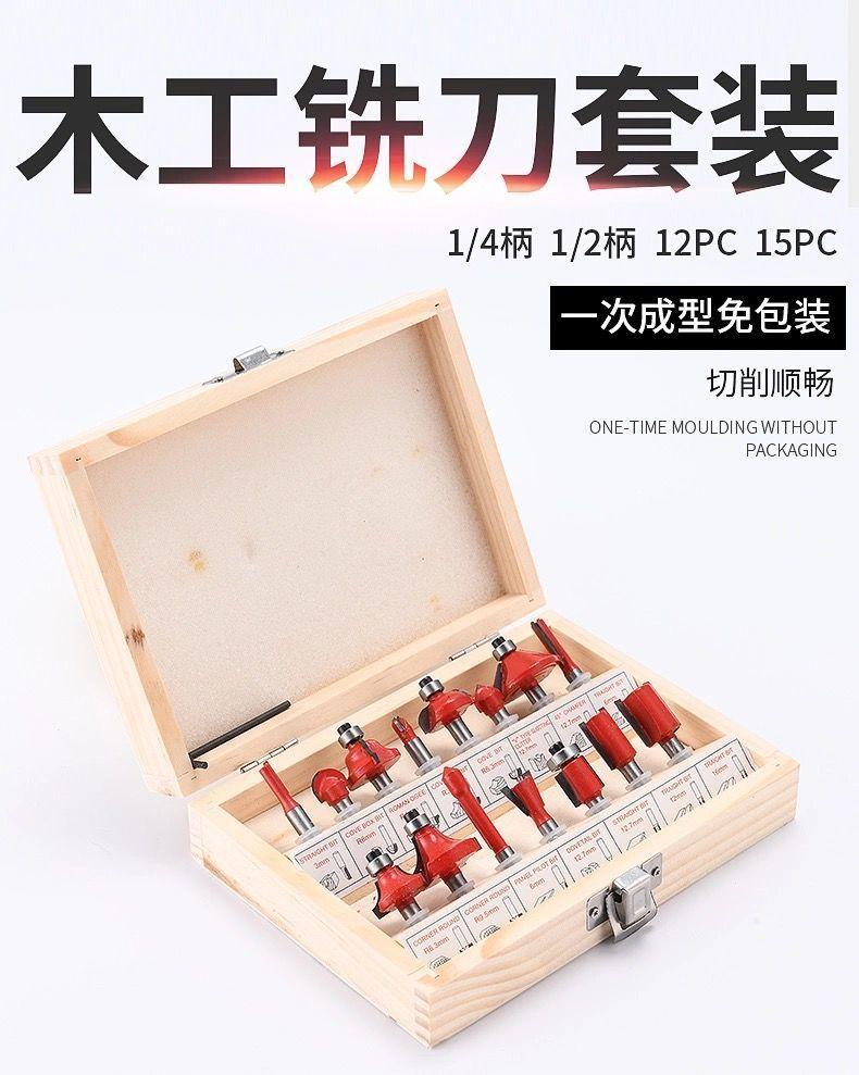 Woodworking milling cutter set of 15 pieces [12.7 handle]]