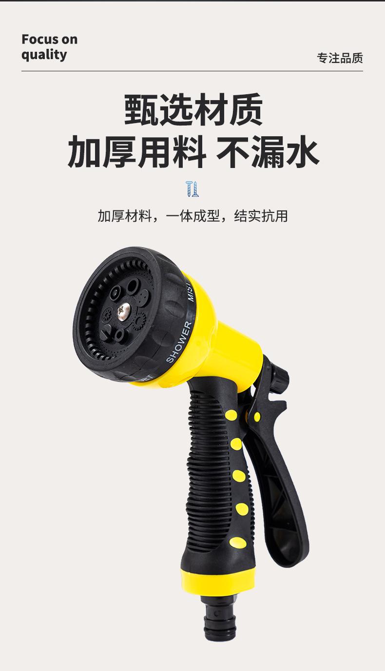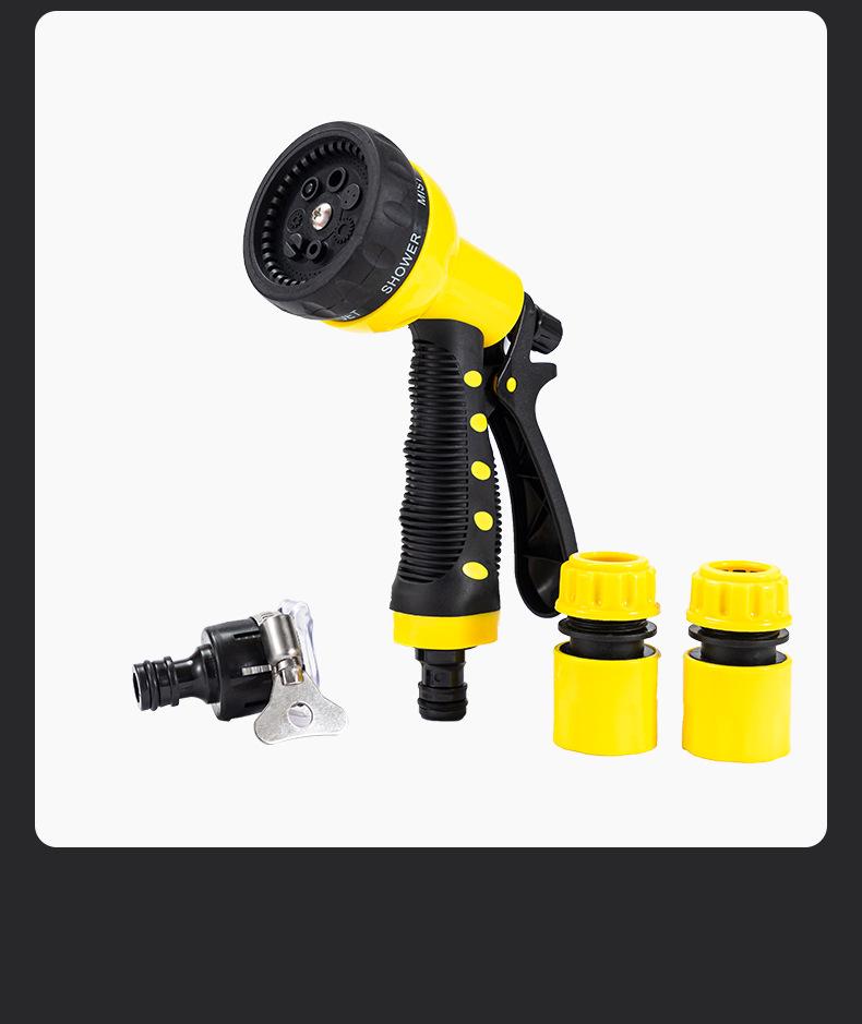 Suministro directo de fábrica, juego multifuncional de pistola rociadora de agua para riego de jardín, apto para el hogar, pistola de agua para lavado de autos con 7 funciones, juego de tarjeta