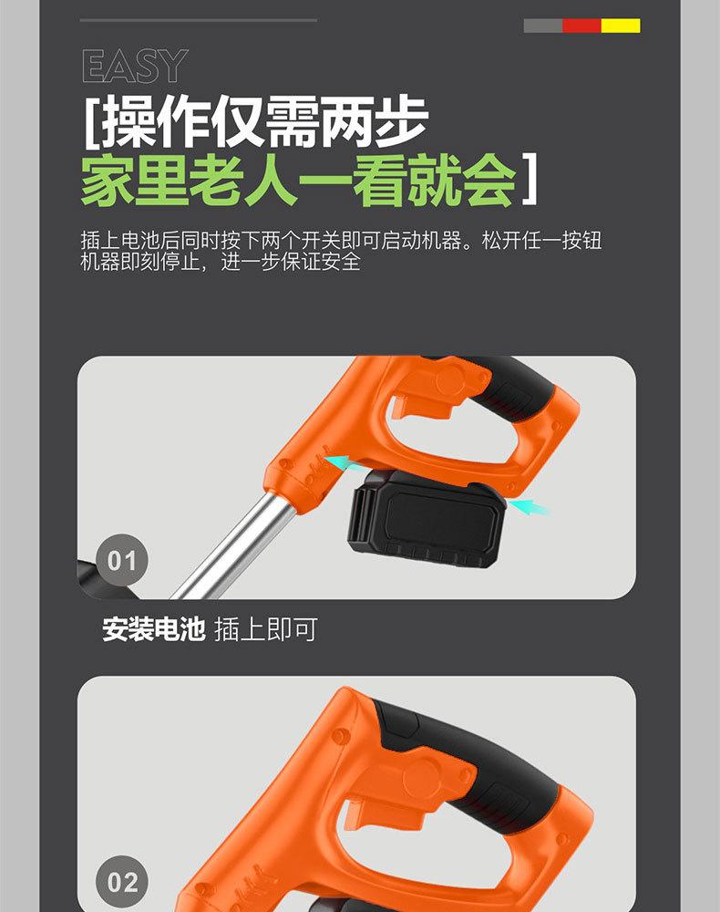 12V lawn mower 3 sections (2 electricity and 1 charge)