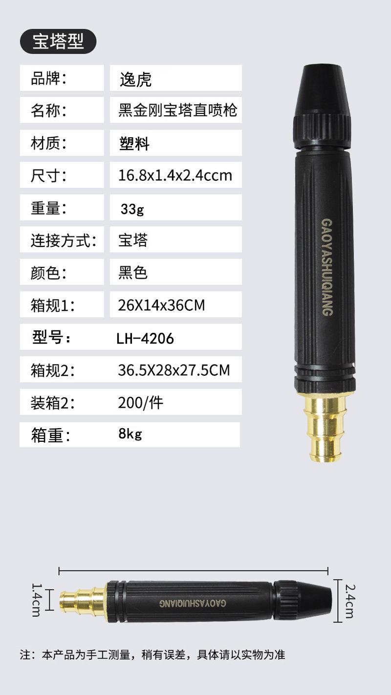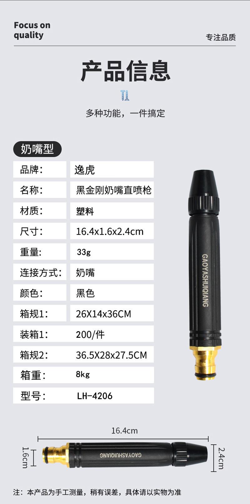 Pistola de pulverización directa, tipo pagoda, pistola de agua de alta presión, venta al por mayor, para lavado de autos domésticos, jardín, cuerpo de plástico Black Diamond, boquilla de carcasa de plástico