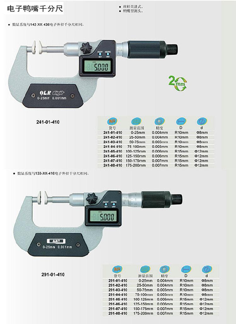| Agente mayorista Qinghai herramientas de medición herramientas de corte calibrador vernier tipo garra micrómetro de diámetro exterior 0-25mm micrómetro no estándar | Herramienta de medición Qingliang especial al por mayor herramienta de corte cabezal de bola simple cabezal de bola doble micrómetro mecánico de pared espesor diámetro exterior 0-25 mm | Micrómetro de exteriores de línea normal con pantalla digital electrónica Qinghai especial al por mayor (Qingliang) 0-25mm | Venta al por mayor: Herramientas de medición Qinghai (Qingliang) 231-01-040 micrómetro electrónico tipo pico de pato para diámetro exterior 0-25 mm | |||
