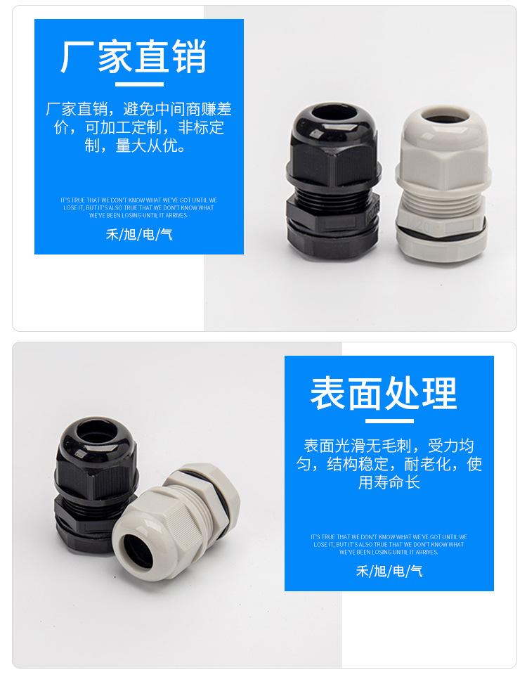 Conector de cable impermeable de nailon PA6, cable Glen Head PG7/9/11/13.5, conector impermeable