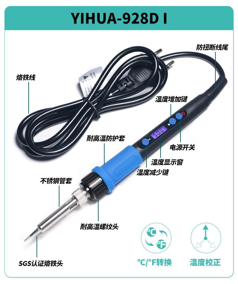 Soldador eléctrico Yihua Supply 928D, 100 W, temperatura ajustable, pantalla digital