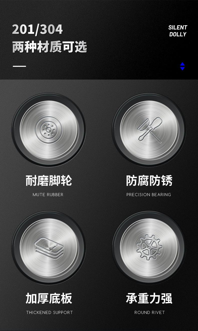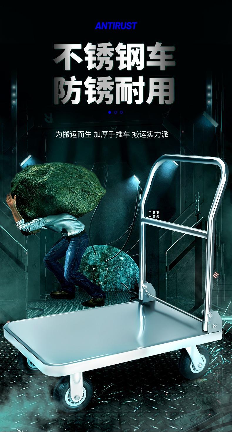 Carro de plataforma con placa de acero inoxidable engrosada, camión plegable, camión de remolque para supermercado, carro de herramientas para el hogar