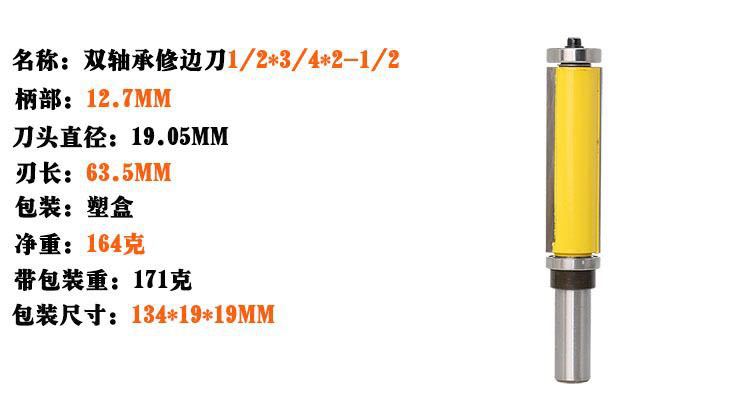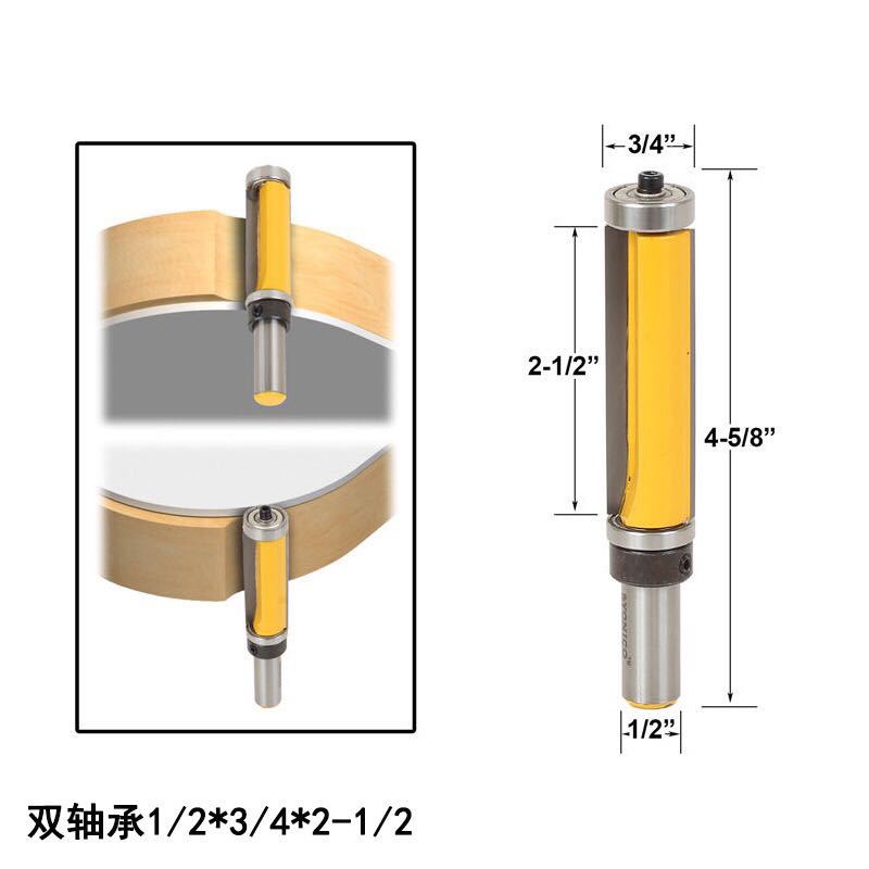 Fresa de imitación para corte con doble rodamiento y mango de 1/2", fresa para carpintería, fresa para carpintería, fresa de imitación para ranurar, fresa de recorte alargada