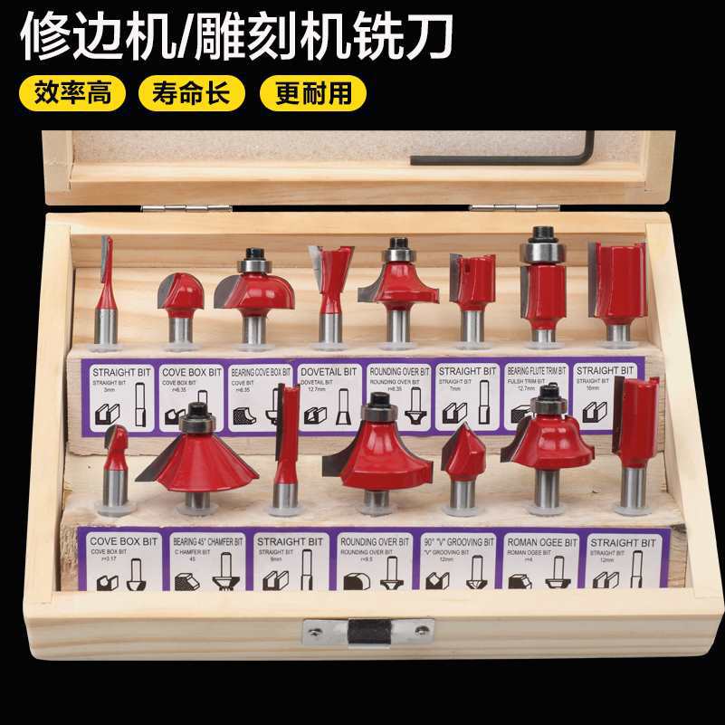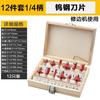 12-piece set of 1/4 handle red with wooden box (for trimming machine), 12-piece set of 1/4 handle with wooden ...