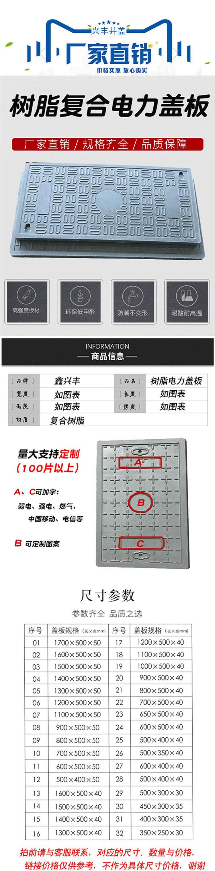 Tapa de registro de resina compuesta, tapa de zanja para cables, tapa de telecomunicaciones, tapa de comunicación de energía, tapa de zanja de drenaje rectangular
