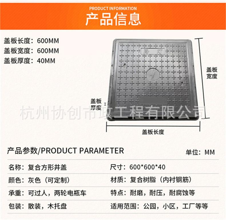 Tapa de registro compuesta Xiechuang Hongyu de resina cuadrada de 600 mm para inspección de aguas pluviales intensas en autopistas municipales